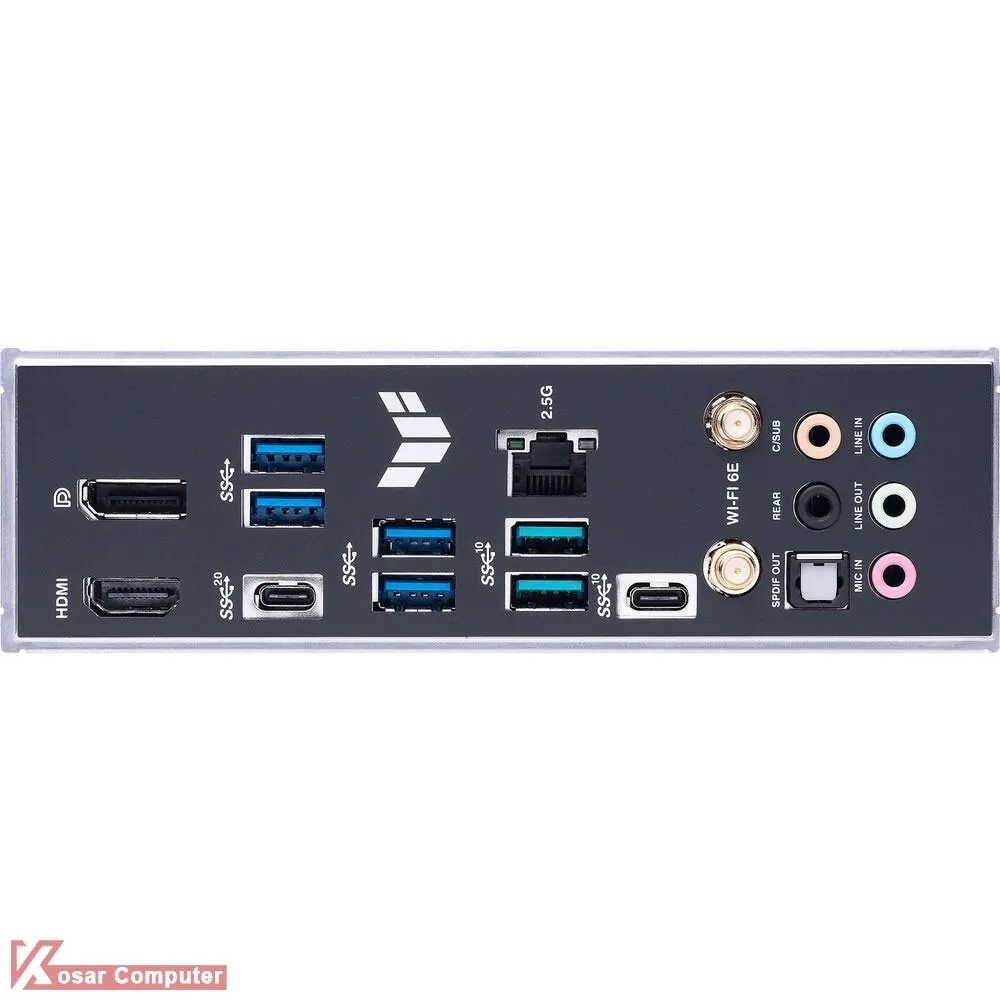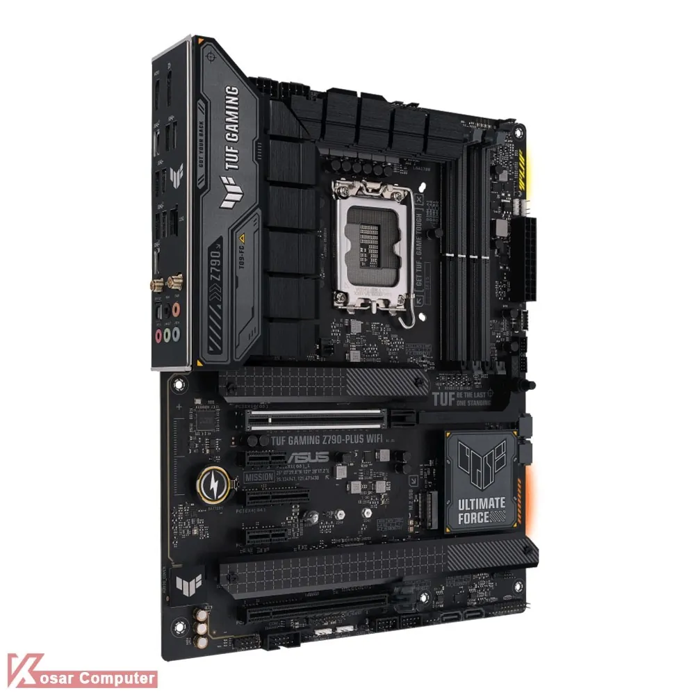 مادربرد گیمینگ ایسوس TUF GAMING Z790-PLUS WIFI از پردازنده های نسل 12 و 13 پشتیبانی می کند.این مادربرد دارای چهار عدد اسلات رم از نوع DDR5 است.در پنل پشتی8 عدد پورت USB 3.2 از نوع TYPE-A و TYPE-C وجود دارد.همچنین برقراری ارتباط وایرلس و بلوتوث دارد