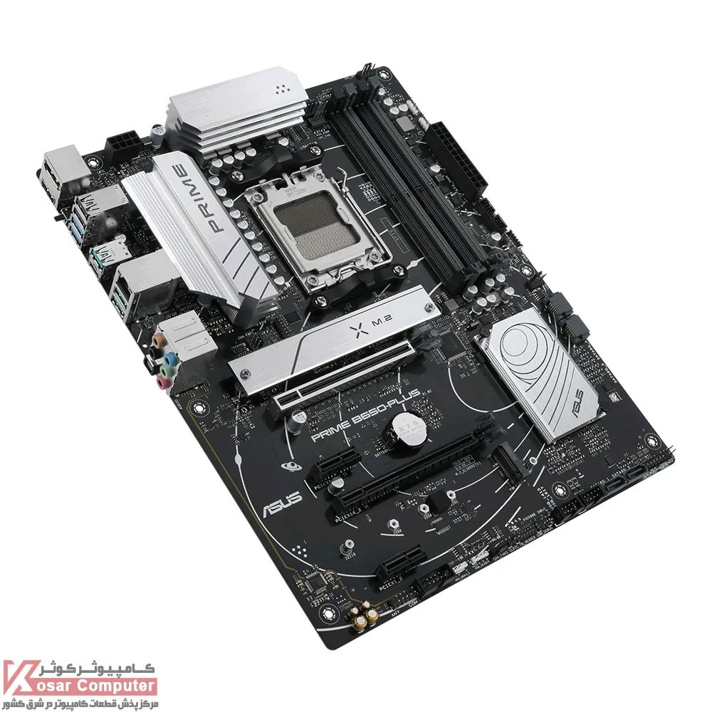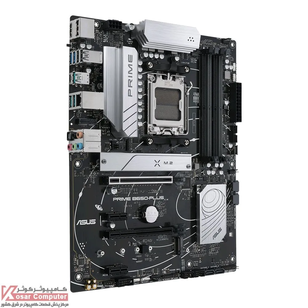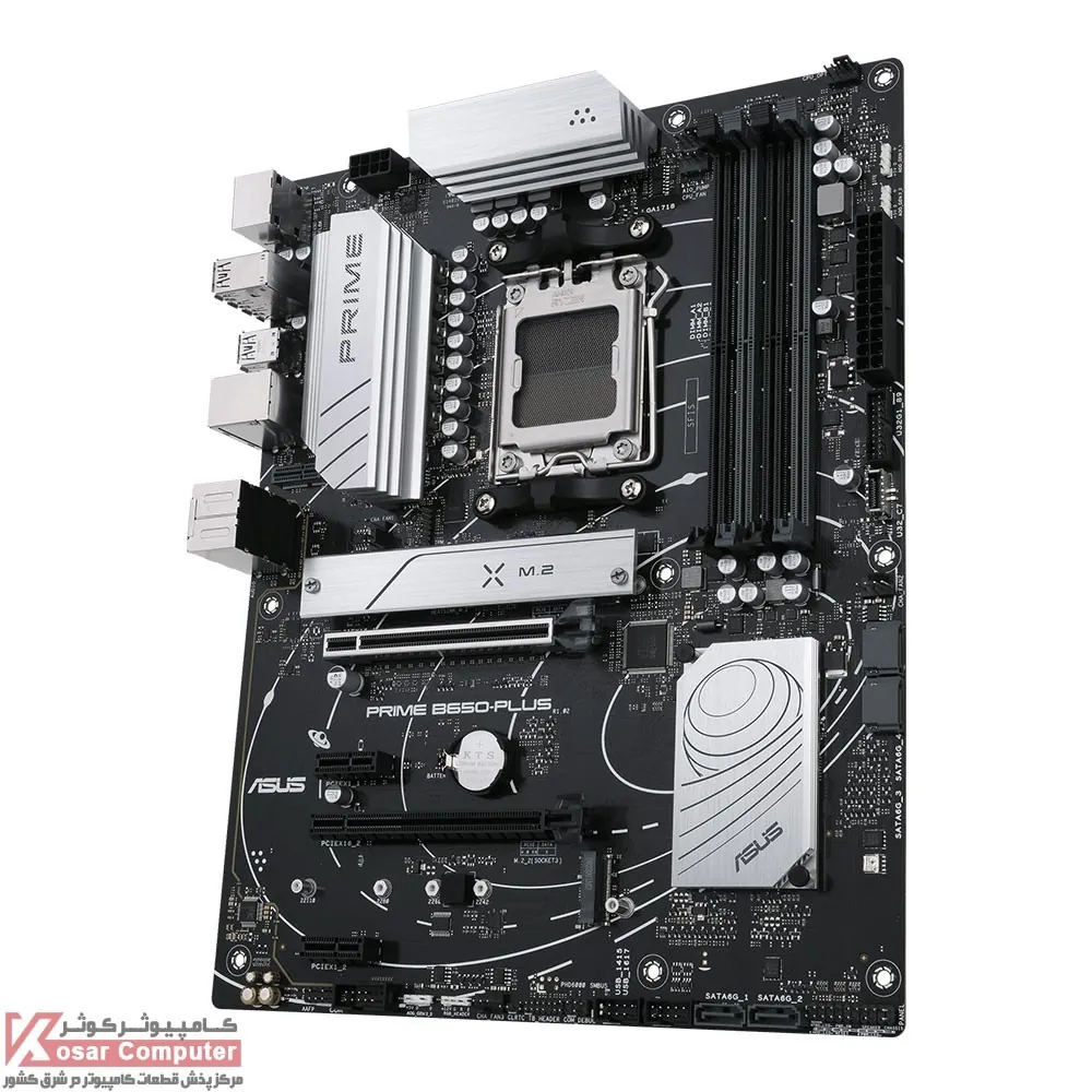 مادربرد ای ام دی DDR5 ایسوس PRIME B650-PLUS از پردازنده های AMD AM5 پشتیبانی می کند.این مادربرد دارای 4 عدد اسلات رم DDR5 است و تا باس 7200 مگاهرتز حافظه رم را می توان روی آن قرار داد.همچنین دارای 2 عدد کانکتور M.2 NVME و 4 عدد پورت ساتا می باشد