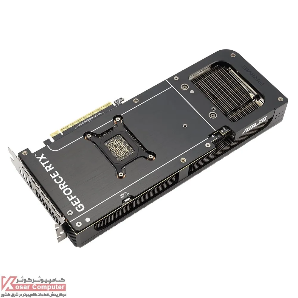 کارت گرافیک 3 فن ایسوس مدل ASUS PRIME RTX 5070 TI O16G دارای 16 گیگابایت حافظه از نوع GDDR7 و رابط 256 یبت همراه با 8960 هسته پردازشی و فرکانس 2527 مگاهرتز می باشد.در پنل پشتی هم 1 پورت HDMI 2.1b همراه با 3 عدد پورت DisplayPort 2.1b