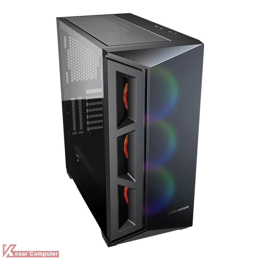 کیس گیمینگ کوگار DARKBLADER X5 RGB دارای درب شیشه ای و ظاهری زیباست.این کیس دارای 7 عدد جایگاه فن است.همچنین دارای 2+2 عدد جایگاه 2.5 اینچ و 2 عدد جایگاه 3.5 اینچ می باشد.در پنل جلویی هم پورت های USB 3.1 TYPE-C و USB 3.0 به همراه دکمه ی کنترلر RGB موجود