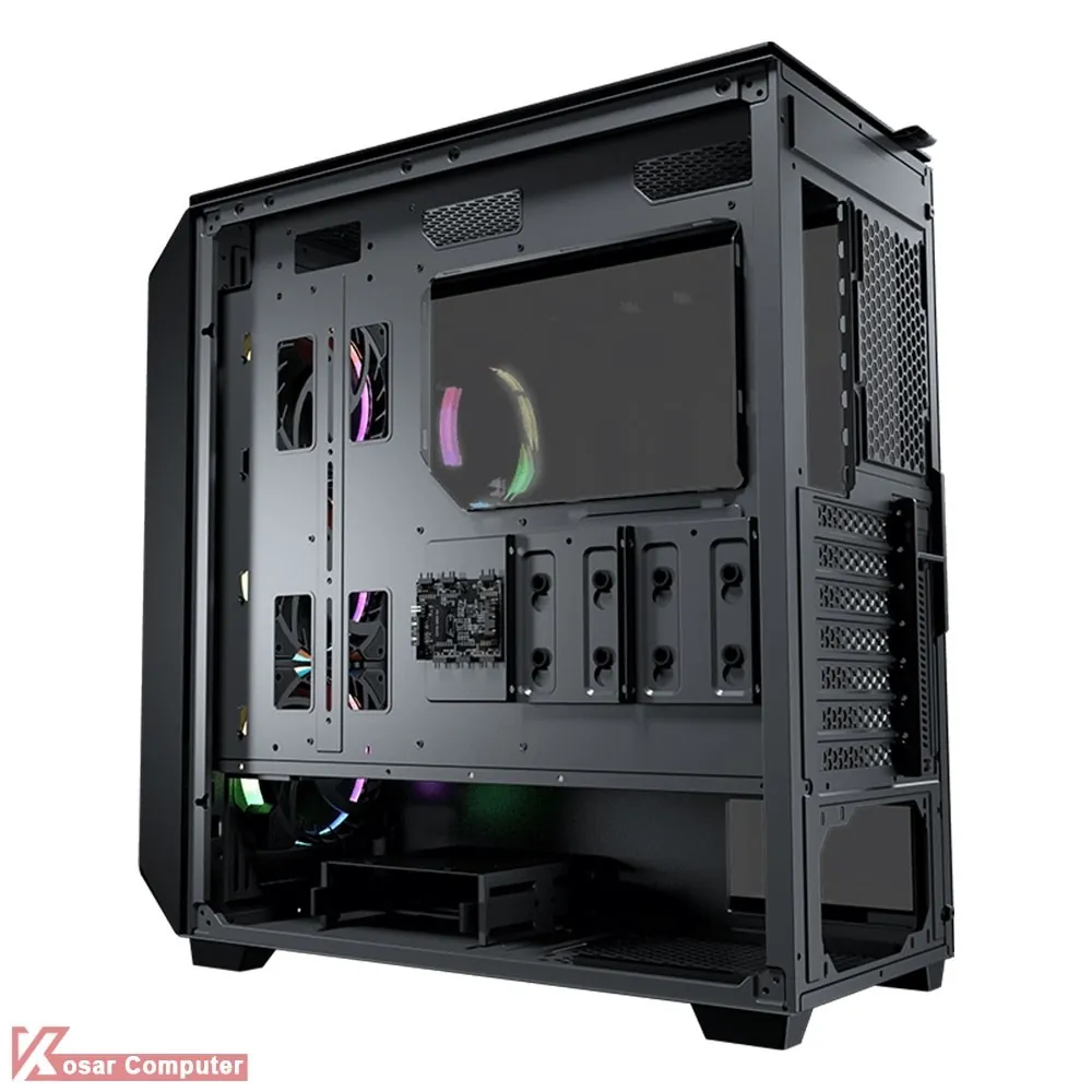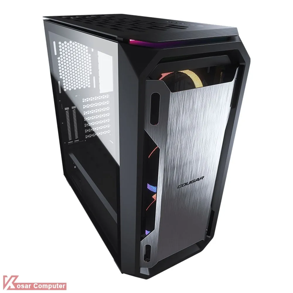 کیس گیمینگ کوگار MX670 RGB دارای درب شیشه ای و ظاهری زیباست.این کیس دارای 7 عدد جایگاه فن است.همچنین دارای 4 عدد جایگاه 2.5 اینچ و 2 عدد جایگاه 3.5 اینچ می باشد.در پنل جلویی هم پورت های USB TYPE-C و USB 3.0 به همراه دکمه های کنترلر RGB موجوده