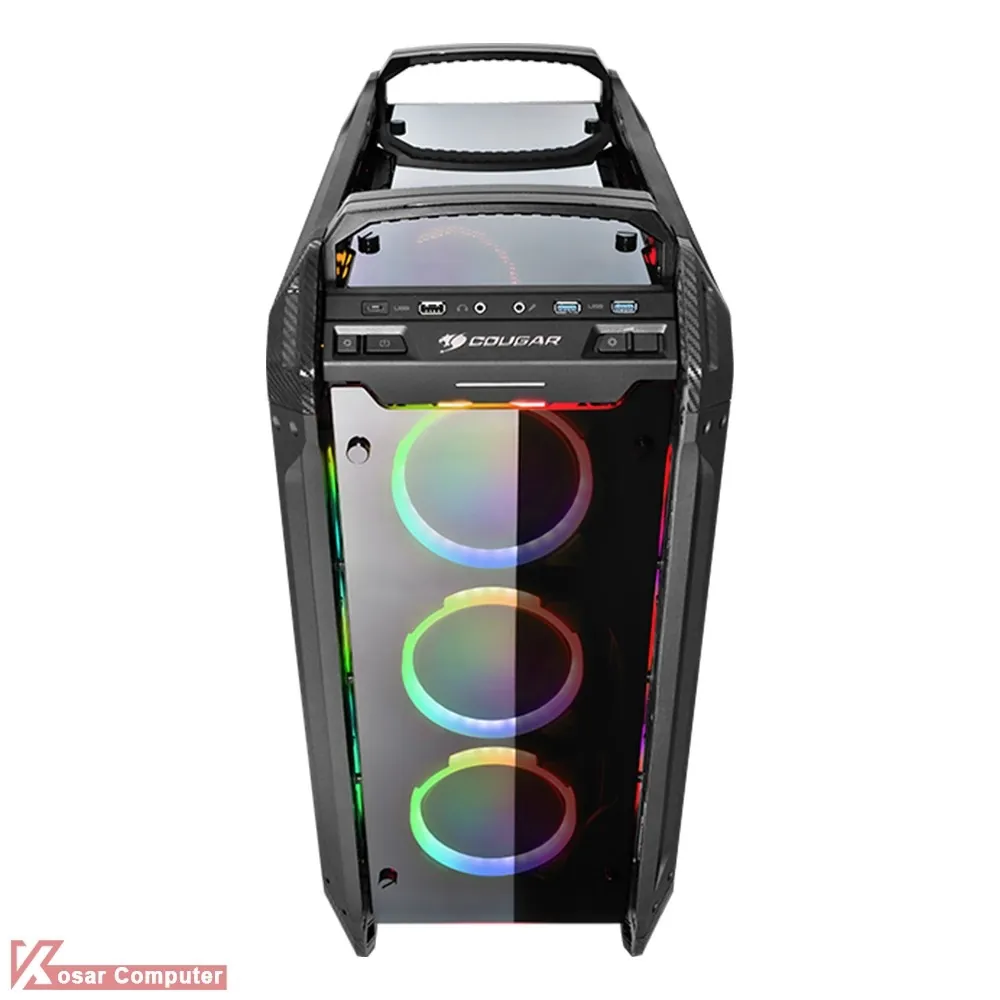کیس جادار کوگار PANZER EVO RGB دارای درب شیشه ای و ظاهری زیباست.این کیس دارای 8 عدد جایگاه فن است و دارای 6 عدد جایگاه 2.5 اینچ و 2 عدد جایگاه 3.5 اینچ می باشد.در پنل جلویی هم پورت های USB TYPE-C و USB 3.0 به همراه دکمه های کنترلر فن موجوده