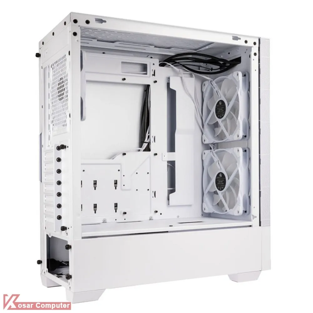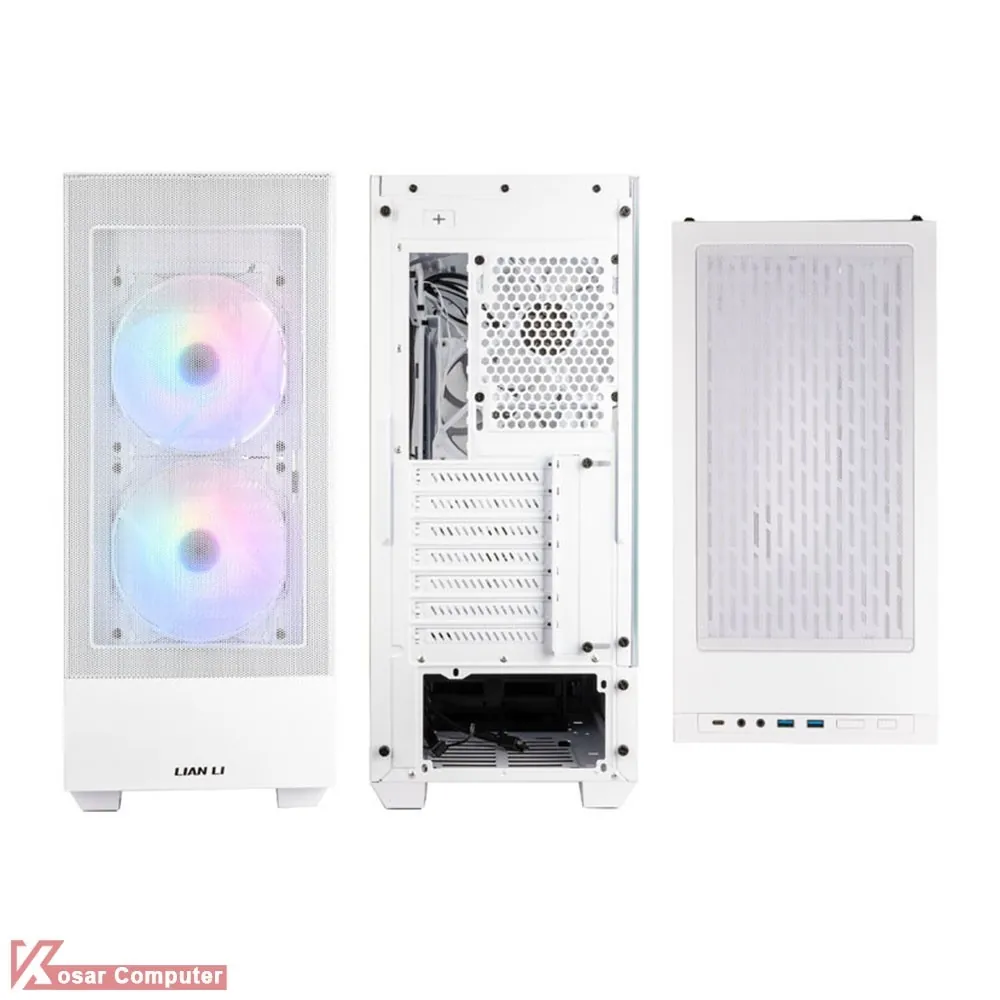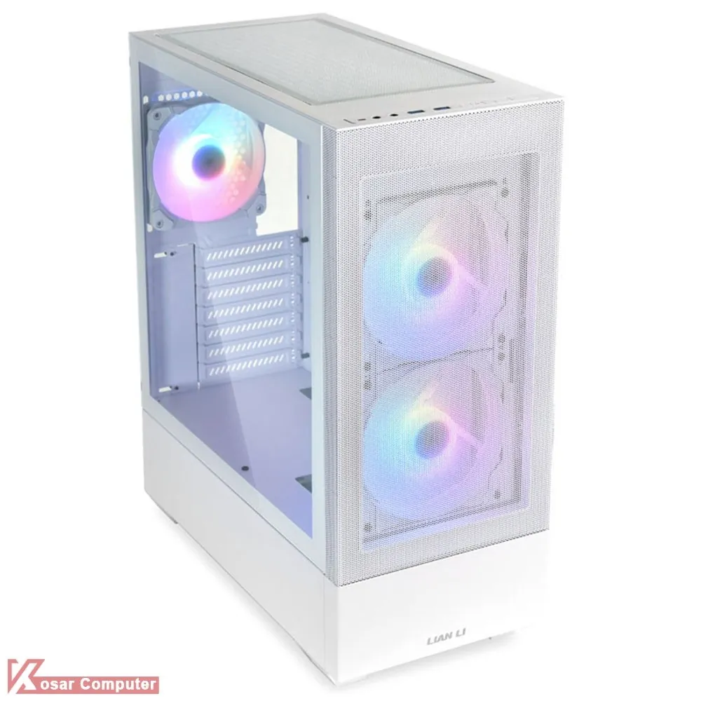 کیس زیبا و حرفه ای لیان لی LANCOOL 205 MESH سفید رنگ است و دارای درب شیشه ای و ظاهری زیبا می باشد.این کیس دارای 5 عدد جایگاه فن می باشد که شرکت لیان لی 3 عدد فن روی آن نصب کرده است.در قسمت تا 280 و در قسمت بالایی تا 280 میلی متر خنک کننده می توان نصب کرد