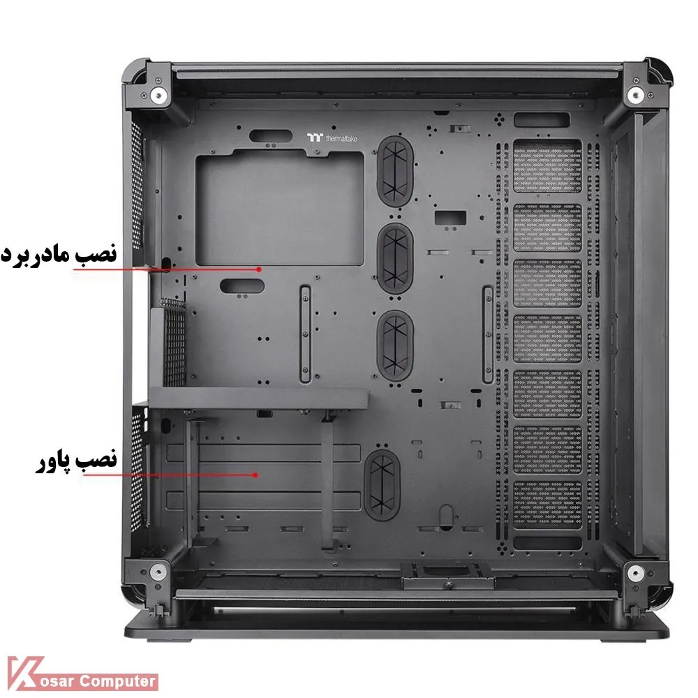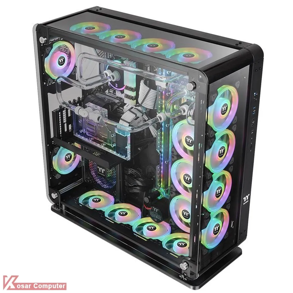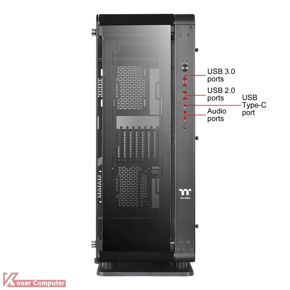 کیس گیمینگ ترمالتیک THERMALTAKE Core P8 Tempered Glass دارای درب شیشه ای و ظاهری زیباست.این کیس دارای 17 عدد جایگاه فن است.در پنل جلویی هم پورت های USB 3.1 TYPE-C و USB 3.0 به همراه پورت USB 2.0 موجود می باشد.پشتیبانی کولینگ هم تا 480 میلی متر است.