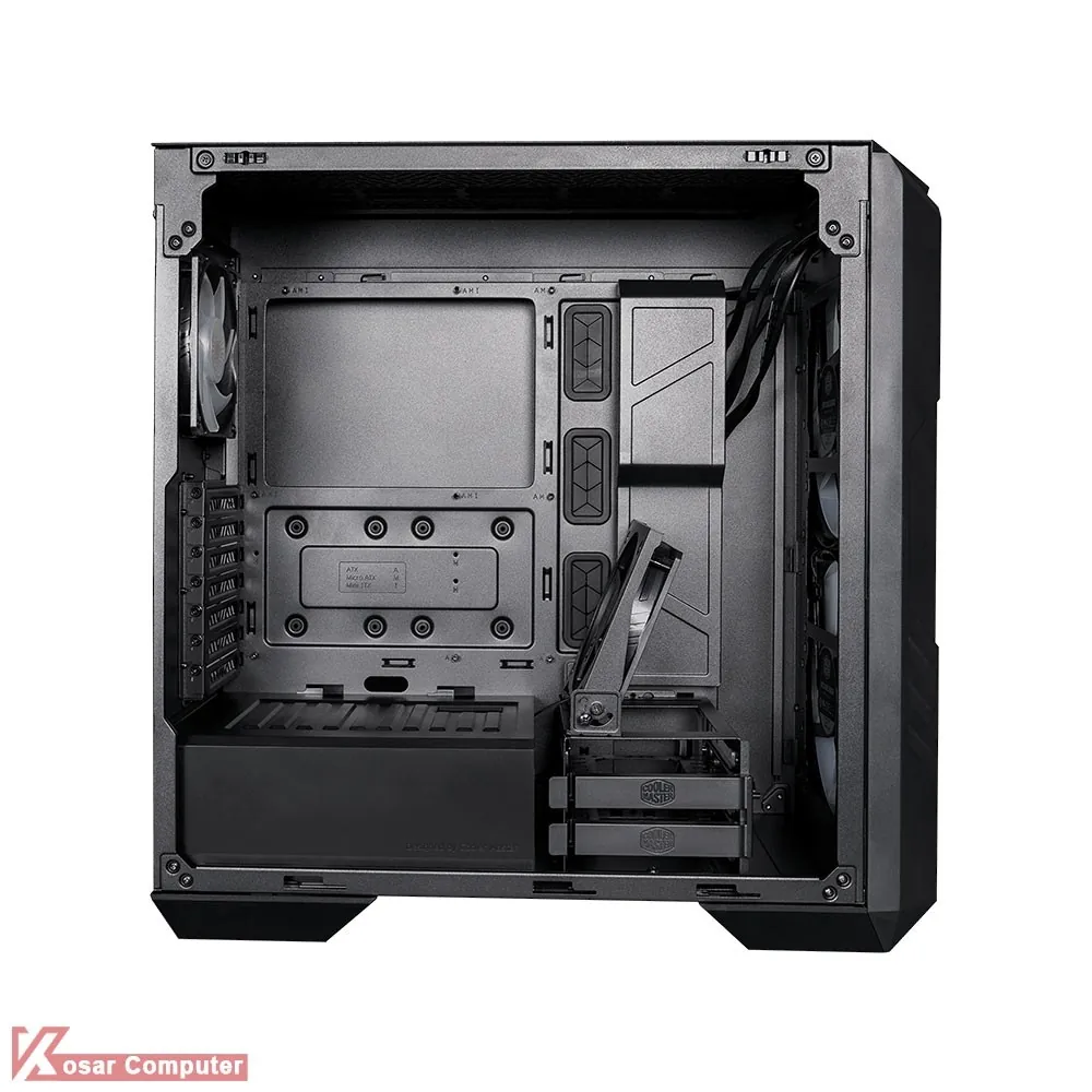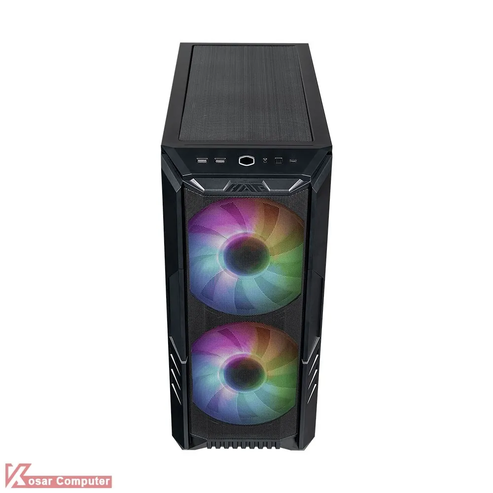 کیس گیمینگ مشکی کولر مستر HAF 500 BLACK ARGB دارای ظاهری زیبا است و در سایز Mid Tower می باشد.بر روی این کیس امکان نصب 7 عدد فن است و 3 عدد فن 120 میلی متری در قسمت جلو (ARGB) نصب شده است.در پنل جلویی USB 3.2 از نوع TYPE-A و TYPE-C موجود است.