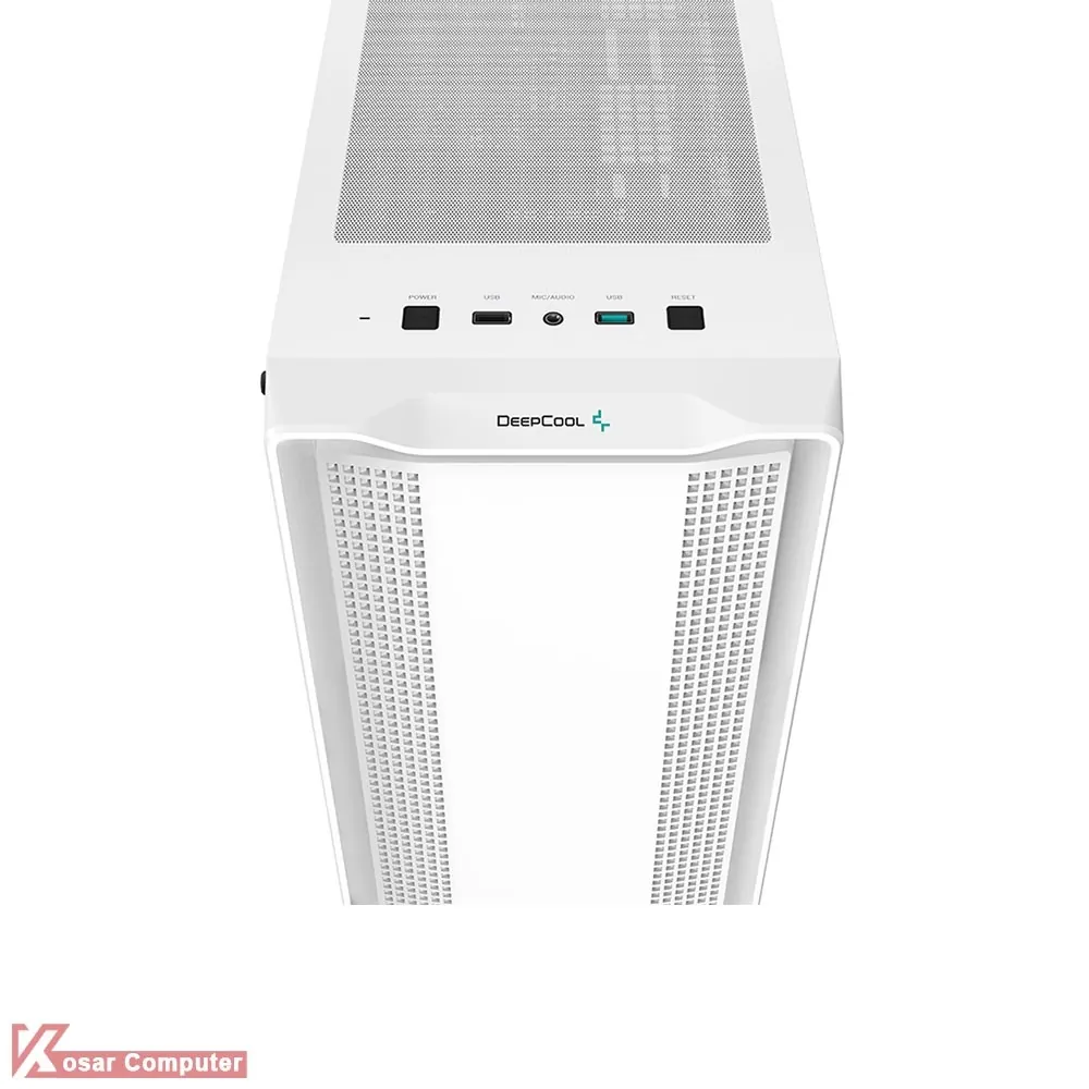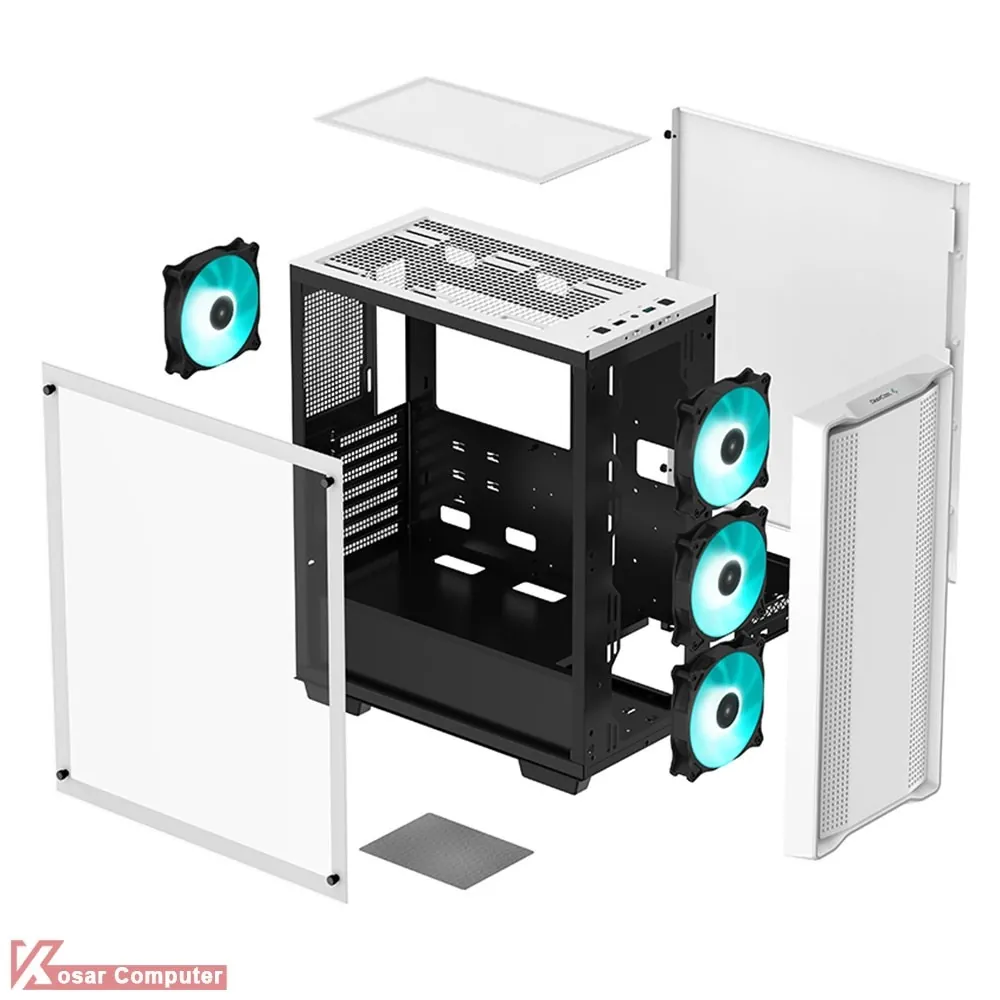 کیس دیپ کول مشکی مدل CC560 WH دارای 6 عدد جایگاه نصب فن می باشد که شرکت 4 عدد فن را روی آن نصب کرده است.در پنل جلویی USB 3.0 و USB 2.0 موجود می باشد.همچنین در قسمت جلویی تا 360 و بالایی کیس امکان نصب کولینگ تا 240 میلی متر می باشد.