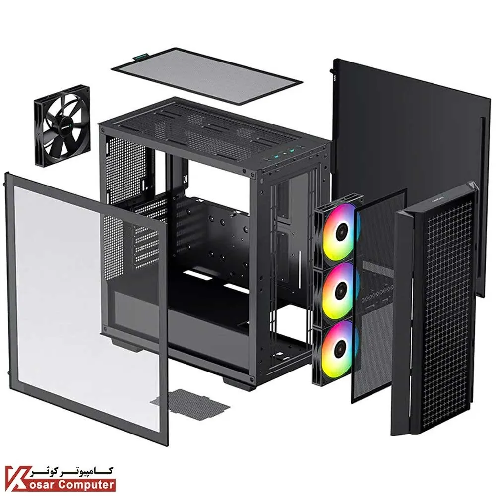کیس فوق العاده زیبا و شیشه ای دیپ کول مدل CG540 برای افراد گیمینگ و خوش سلیقه بسیار مناب است.در پنل جلویی دو عدد پورت USB 3.0 موجود می باشد.همچنین 3 عدد فن 120 میلی متری ARGB در قسمت جلویی و 1 عدد فن 140 میلی متری در پشت کیس نصب شده است.