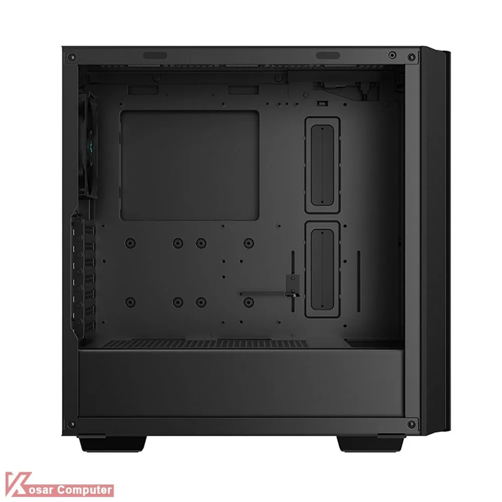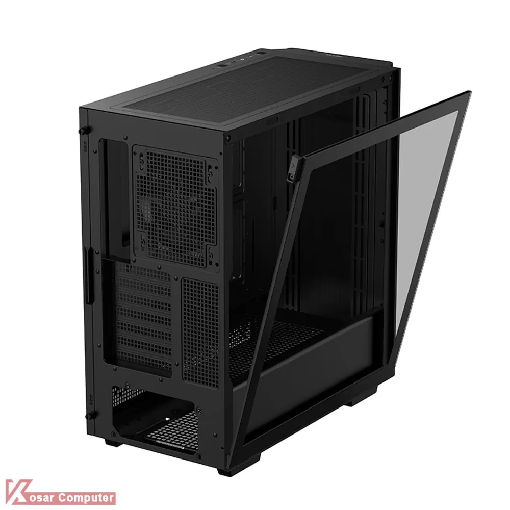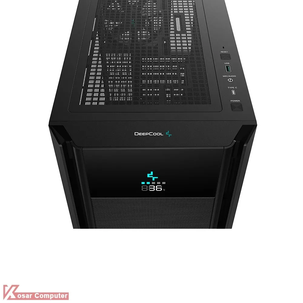 کیس دیپ کول مشکی مدل CH510 MESH DIGITAL دارای 9 عدد جایگاه نصب فن است.این کیس برای افراد گیمینگ و خوش سلیقه بسیار مناب است.در پنل جلویی USB 3.0 و USB TYPE-C موجود می باشد.همچنین در قسمت جلویی و بالایی کیس امکان نصب کولینگ تا 360 میلی متر می باشد.