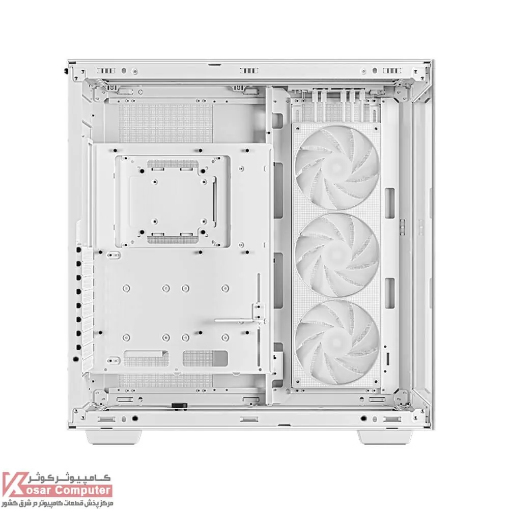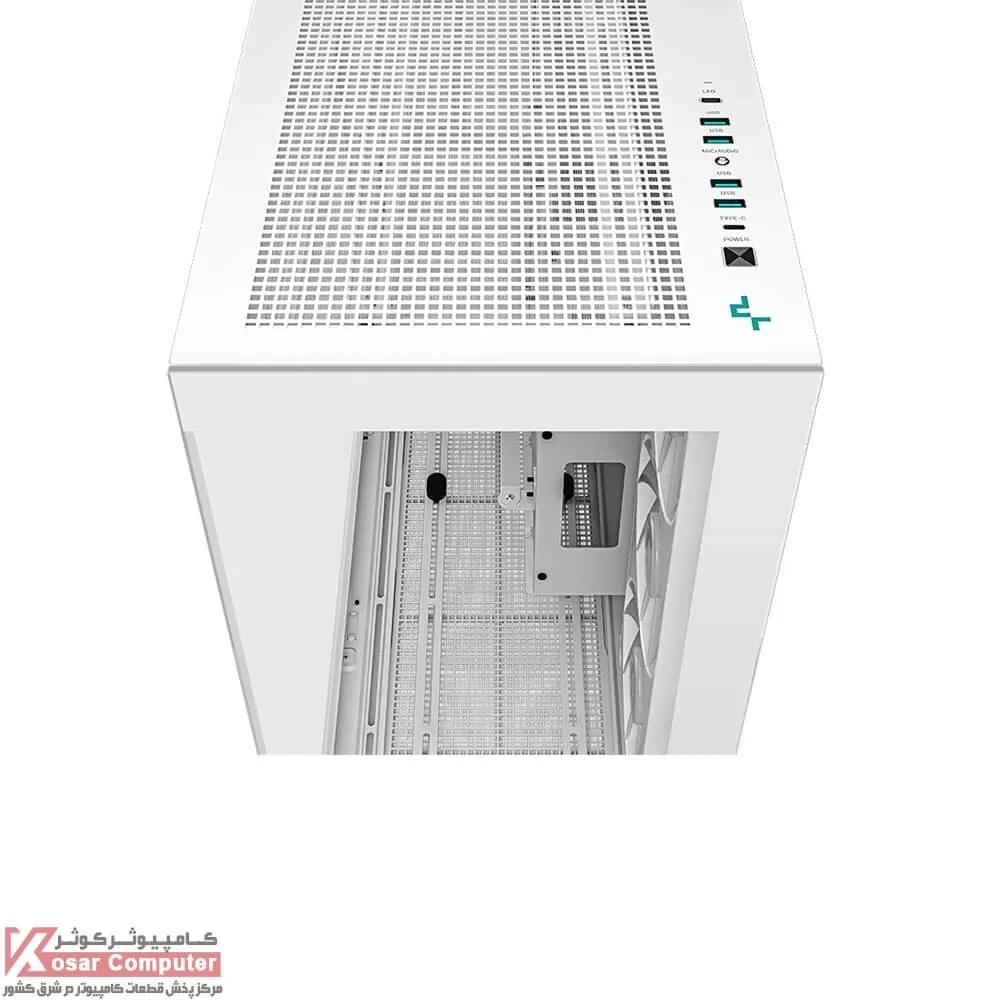 کیس دیپ کول فول تاور سفید CH780 WHITE دارای 9 عدد جایگاه نصب فن می باشد که شرکت 3 عدد فن 140 میلی متری را روی آن نصب کرده است.در قسمت بالایی ، کناری و پایینی تا 420 میلی متر کولینگ را می توان قرار داد.پنل جلویی هم 4 عدد USB 3.0 همراه USB TYPEC موجود