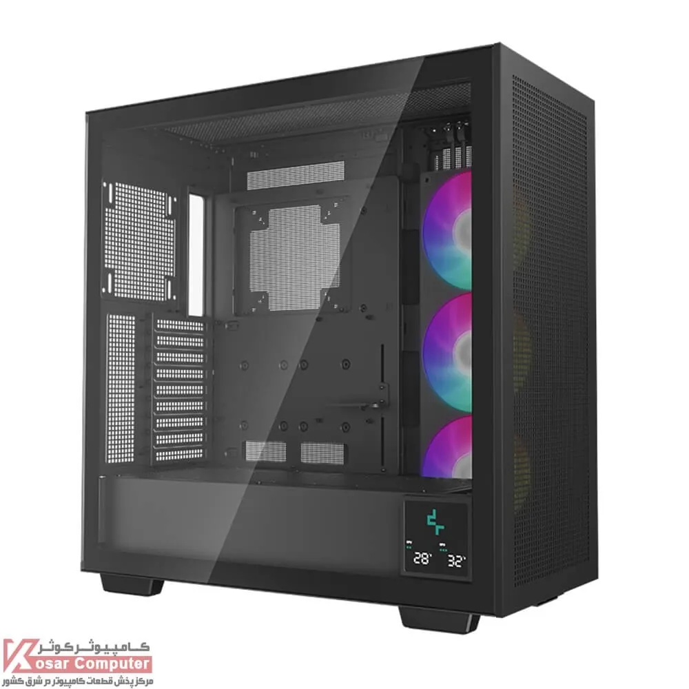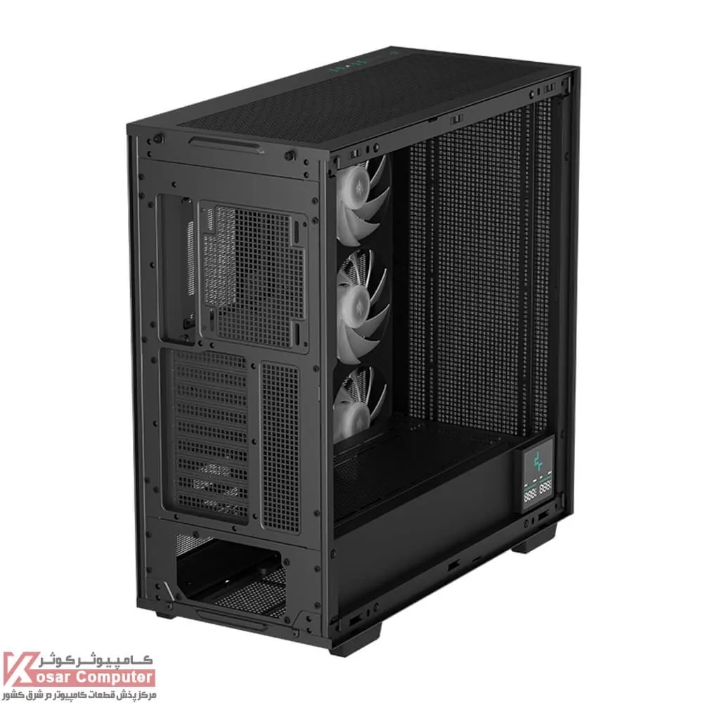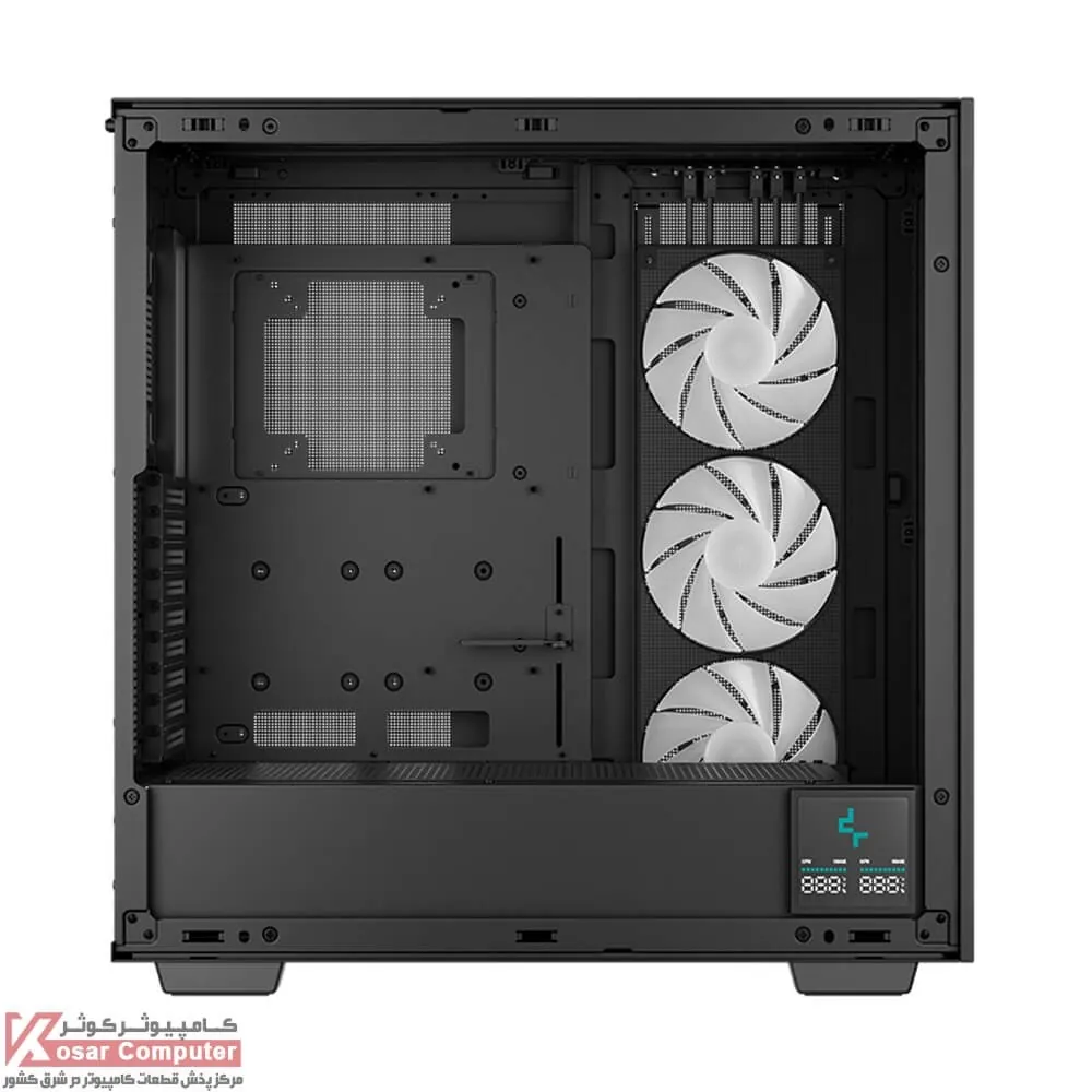 کیس دیپ کول فول تاور مشکی MORPHEUS دارای 16 عدد جایگاه نصب فن می باشد که شرکت 3 عدد فن 140 میلی متری را روی آن نصب کرده است.در قسمت جلویی ، بالایی ، کناری و پایینی تا 420 میلی متر کولینگ را می توان قرار داد.پنل جلویی هم 4 عدد USB 3.0 همراه USB TYPEC موجود