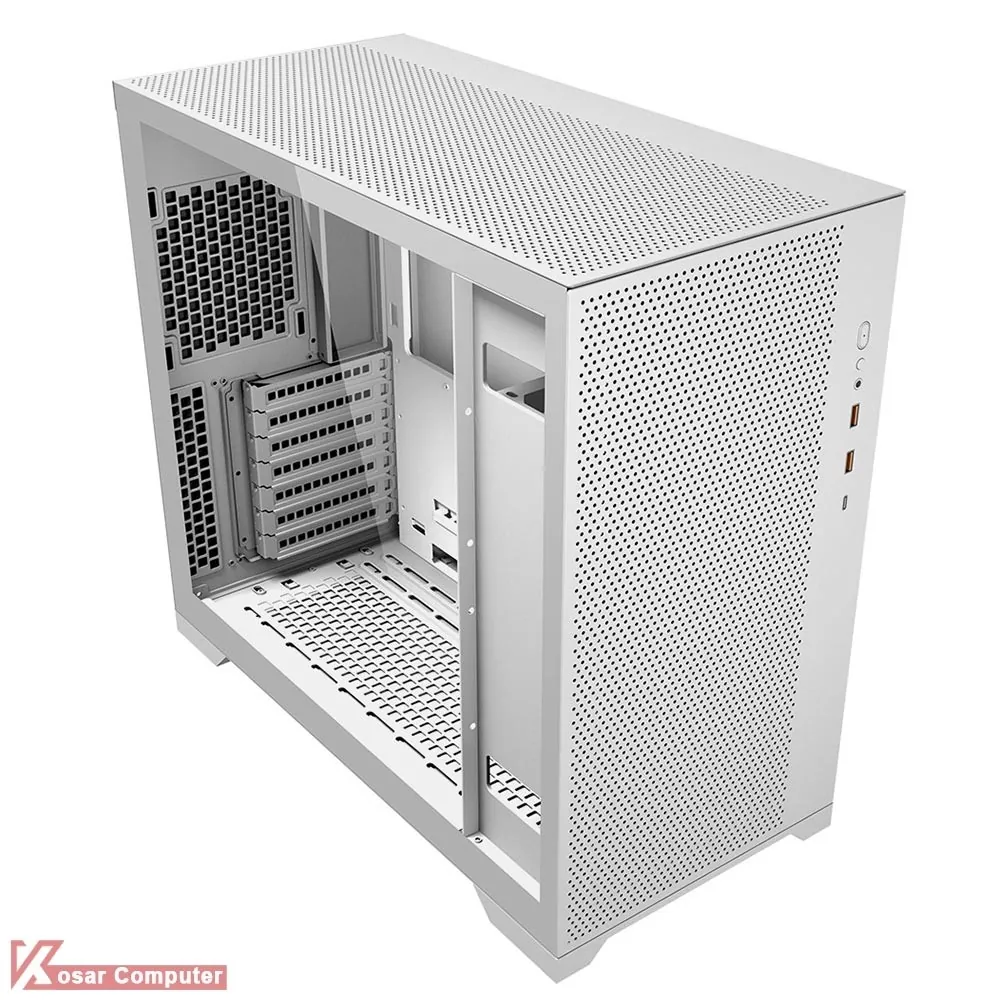 کیس اف اس پی سفید مدل FSP CMT580W دارای 7 عدد جایگاه فن می باشد که شرکت 4 عدد فن 120 میلی متری روی آن نصب کرده است.در پنل جلویی USB3.2 Gen1 و USB3.2 Gen2 Type-C موجود می باشد.همچنین در قسمت بالایی تا 360 و پایین تا 360 میلی متر کولینگ پشتیبانی می شود