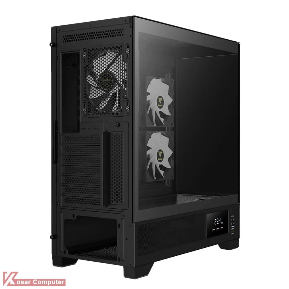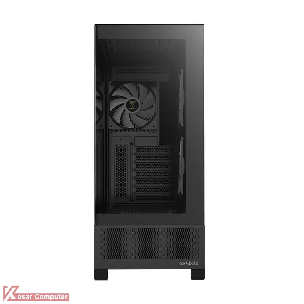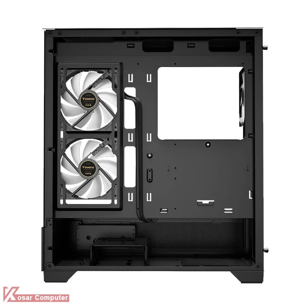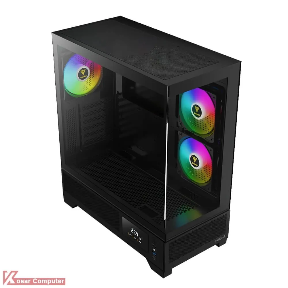 کیس گیم دیاس مدل GAMDIAS ATLAS M1 دارای 6 عدد جایگاه فن می باشد که شرکت 3 عدد فن از نوع ARGB روی آن نصب کرده است.در پنل جلویی USB3.0 و USB TYPE-C همراه کنترلر LED و نمایشگر موجود می باشد.همچنین در قسمت بالایی کیس 360 میلی متر کولینگ پشتیبانی می
