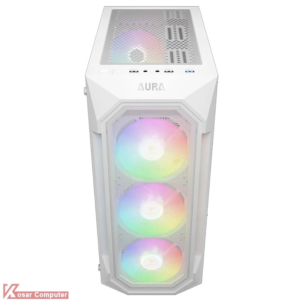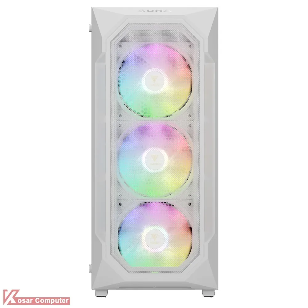 کیس گیم دیاس سفید مدل GAMDIAS AURA GC1 ELITE WH دارای 6 عدد جایگاه فن می باشد که شرکت 4 عدد فن 120 میلی متری از نوع RGB روی آن نصب کرده است.در پنل جلویی USB3.0 و USB 2.0 همراه کنترلر LED موجود می باشد.همچنین در قسمت جلویی کیس 360 میلی متر کولینگ پشتیبانی