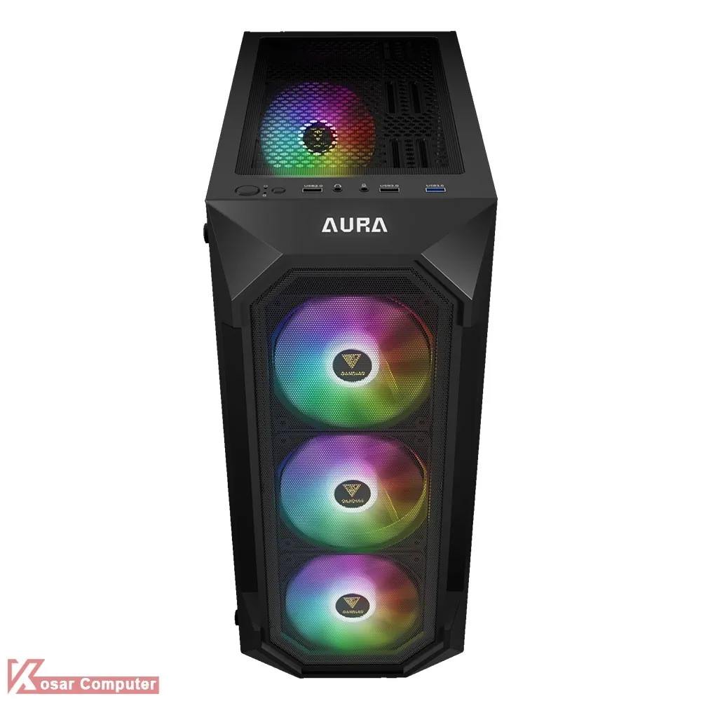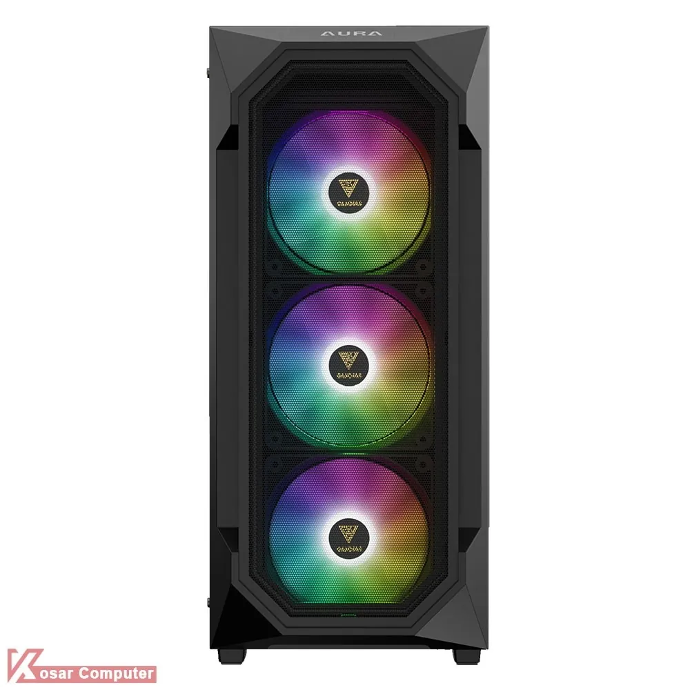 کیس گیم دیاس مدل GAMDIAS AURA GC1 ELITE دارای 6 عدد جایگاه فن می باشد که شرکت 4 عدد فن 120 میلی متری از نوع RGB روی آن نصب کرده است.در پنل جلویی USB3.0 و USB 2.0 همراه کنترلر LED موجود می باشد.همچنین در قسمت جلویی کیس 360 میلی متر کولینگ پشتیبانی می شود