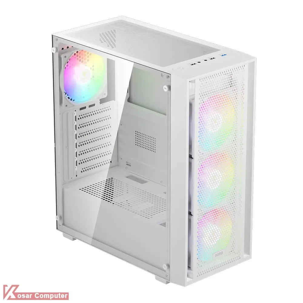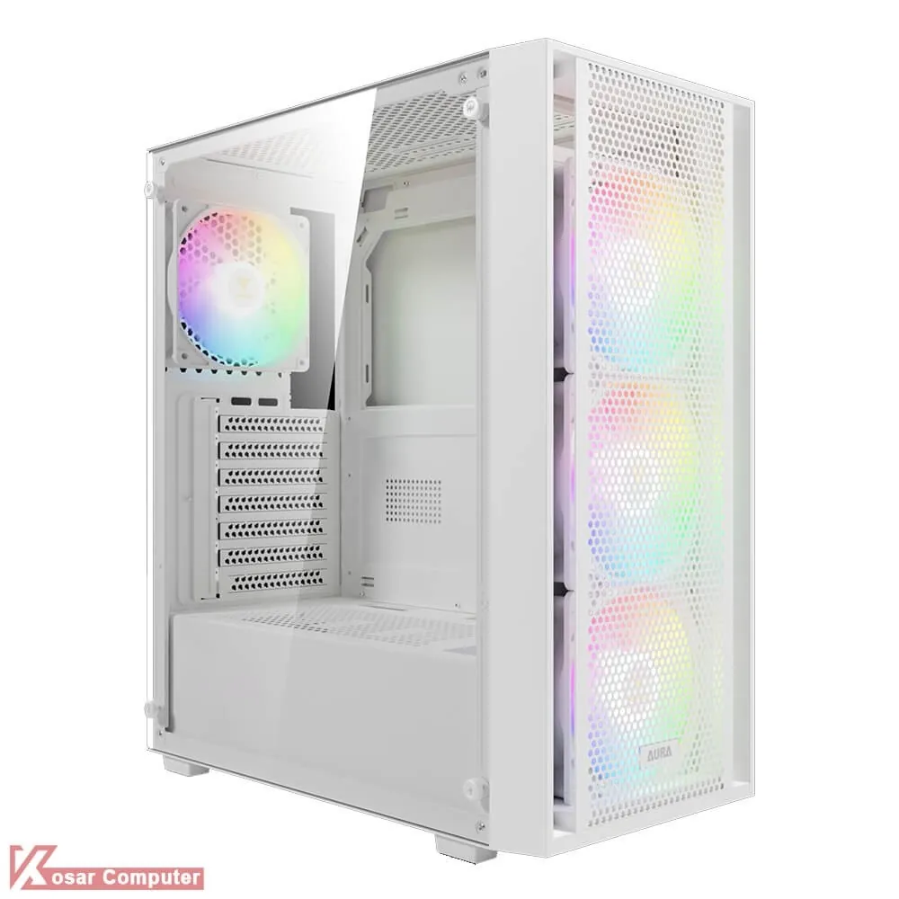 کیس سفید گیم دیاس مدل GAMDIAS AURA GC2 ELITE WHITE دارای 6 عدد جایگاه فن می باشد که شرکت 4 عدد فن 120 میلی متری از نوع RGB روی آن نصب کرده است.در پنل جلویی USB3.0 و USB 2.0 موجود می باشد.همچنین در قسمت جلویی کیس 360 میلی متر کولینگ پشتیبانی می شود