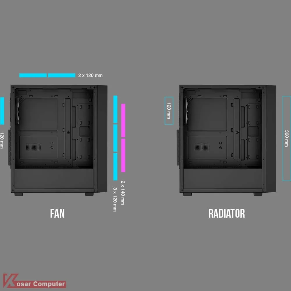 | قابلیت نصب رادیاتور واتر کولینگ پشت کی | 120 میلی متر |