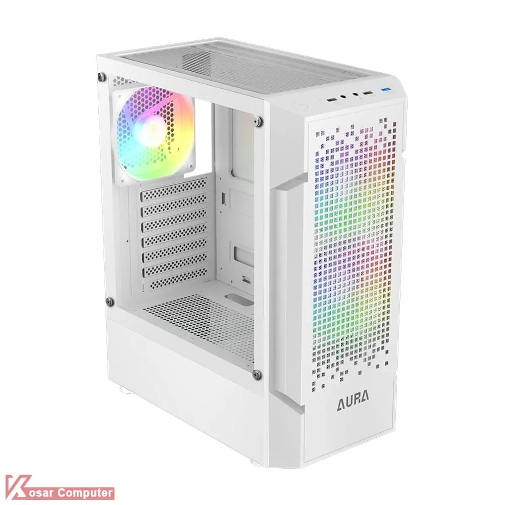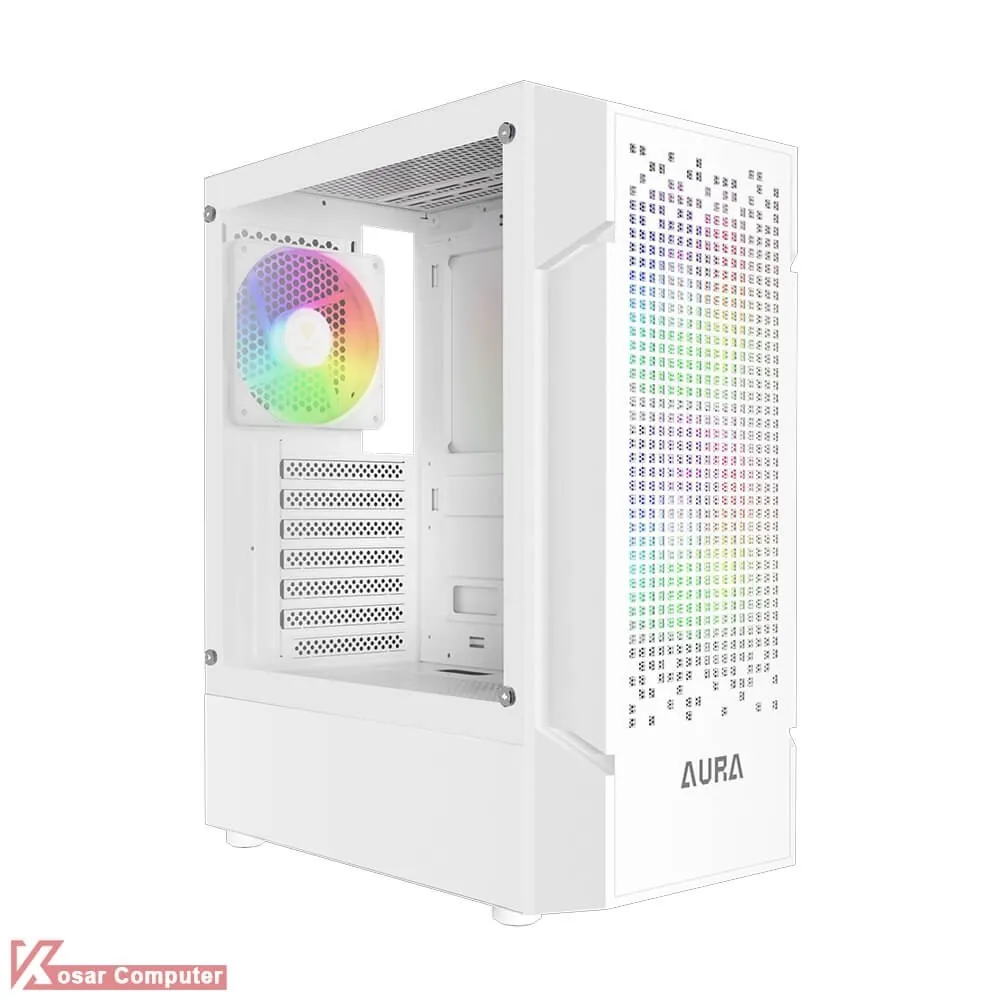 کیس گیم دیاس مدل GAMDIAS AURA GC7 WH دارای 6 عدد جایگاه فن می باشد که شرکت 3 عدد فن 120 میلی متری از نوع Fixed RGB روی آن نصب کرده است.در پنل جلویی USB3.0 و USB 2.0 همراه کنترلر LED موجود می باشد.همچنین در قسمت جلویی کیس 360 میلی متر کولینگ پشتیبانی می ش