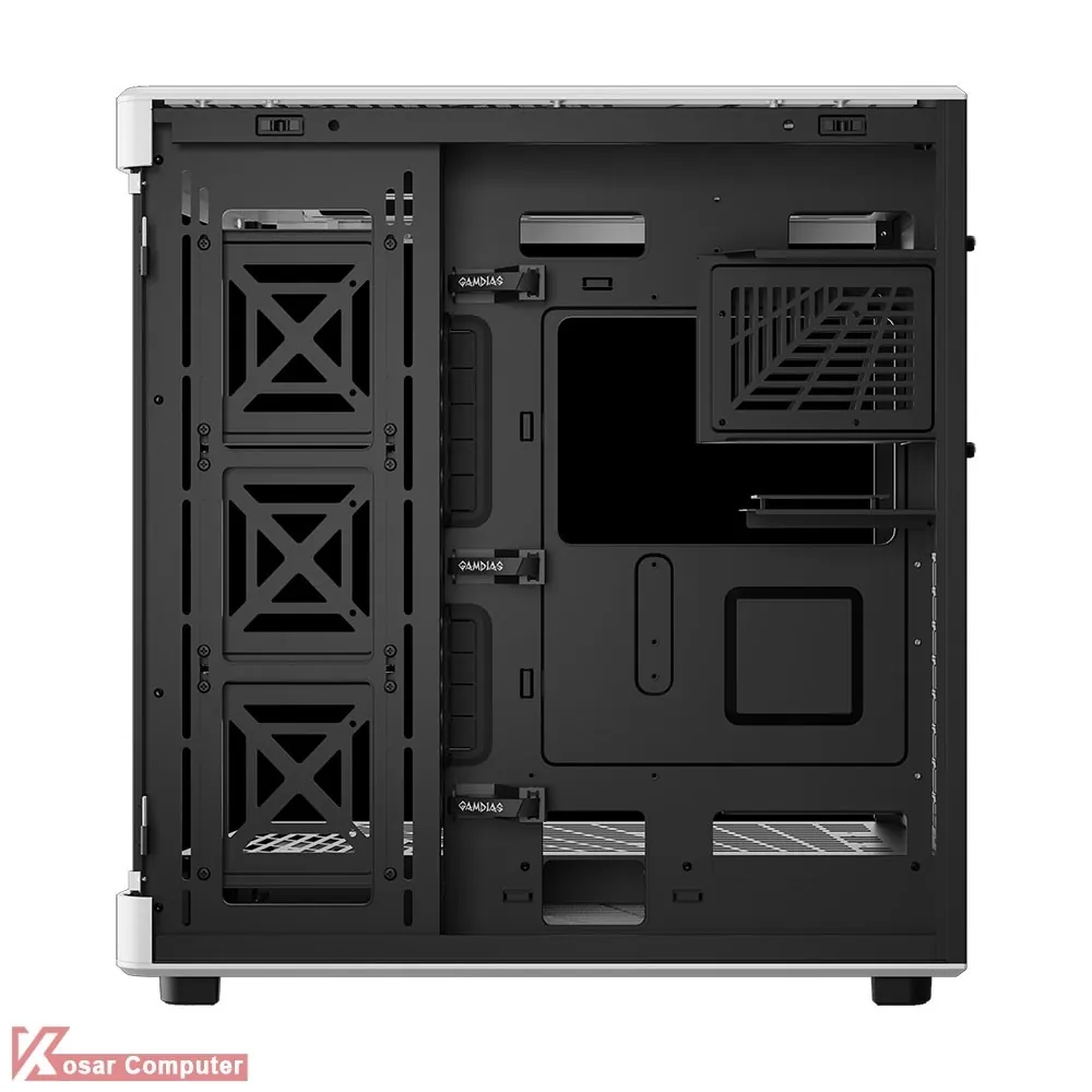 کیس گیم دیاس مدل GAMDIAS NESO P1 BW دارای 10 عدد جایگاه فن می باشد.در پنل جلویی USB3.0 و USB TYPE-C همراه کنترلر LED موجود می باشد.همچنین در قسمت کناری کیس 360 و 420 میلی متر و قسمت بالایی هم 360 میلی متر کولینگ پشتیبانی می شود