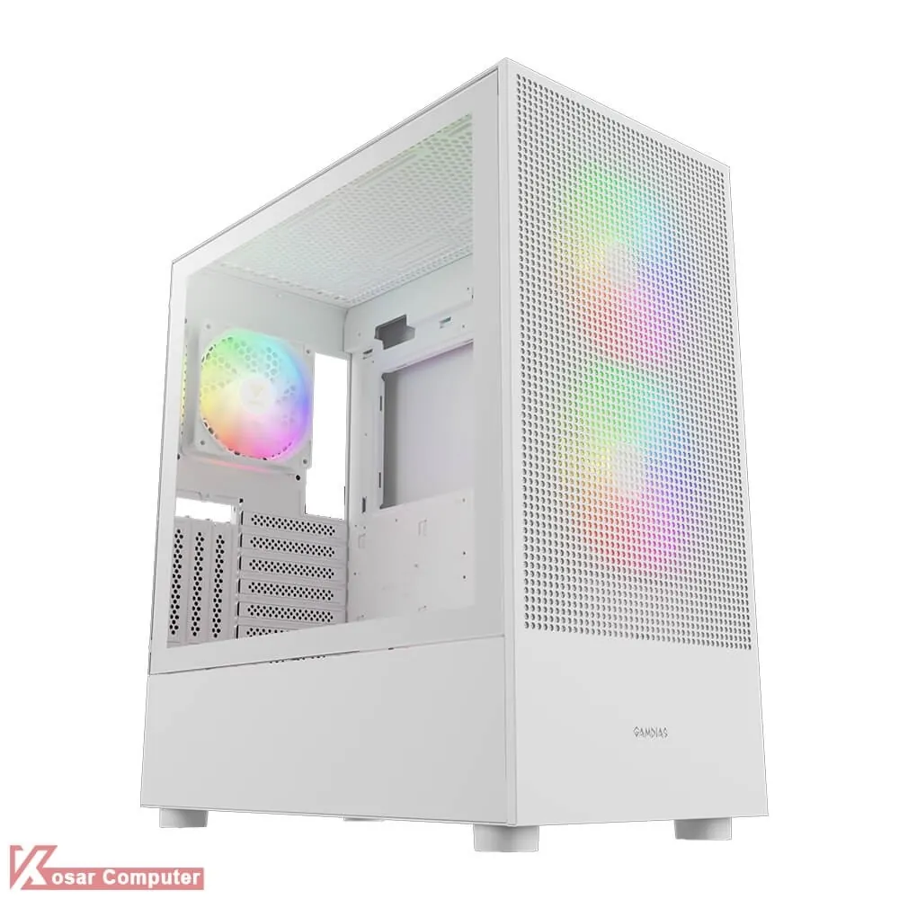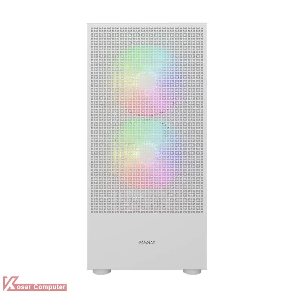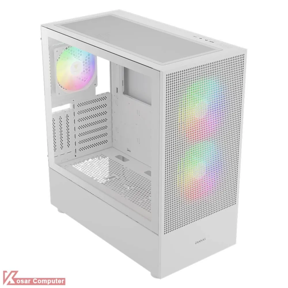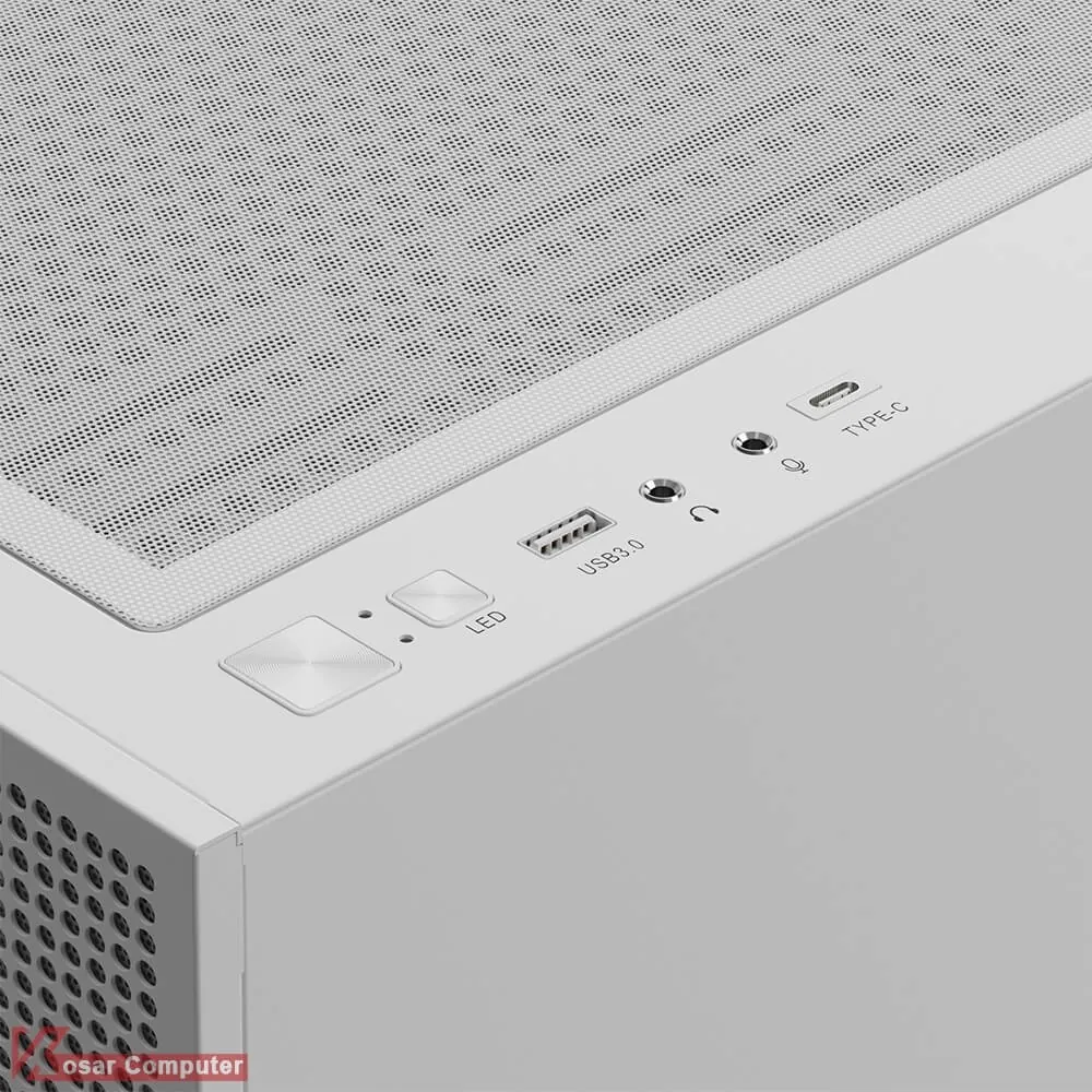کیس گیم دیاس مدل GAMDIAS TALOS E3 MESH ELITE WH دارای 7 عدد جایگاه فن می باشد که شرکت 3 عدد فن از نوع ARGB روی آن نصب کرده است.در پنل جلویی USB3.0 و USB TYPE-C همراه کنترلر LED موجود می باشد.همچنین در قسمت جلویی و بالایی کیس 360 میلی متر کولینگ پشتیبانی
