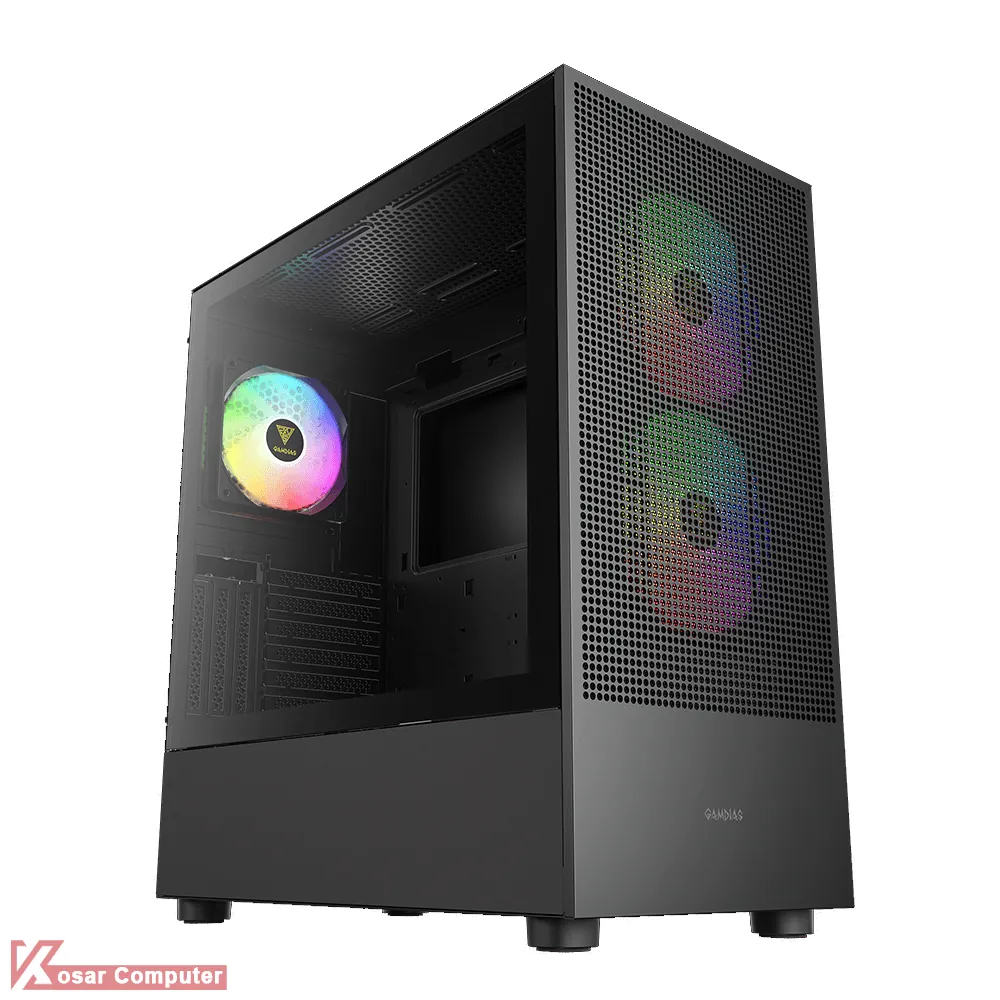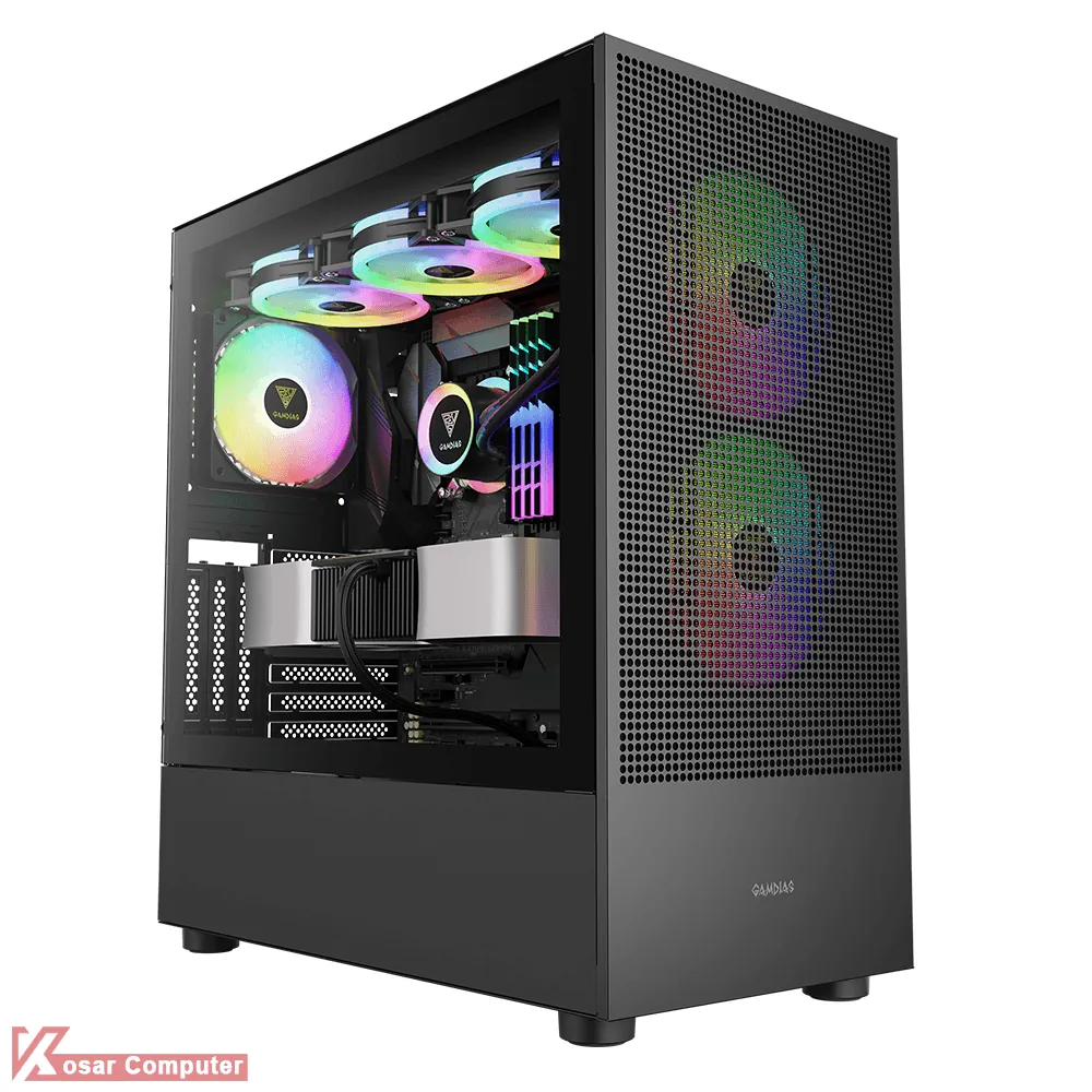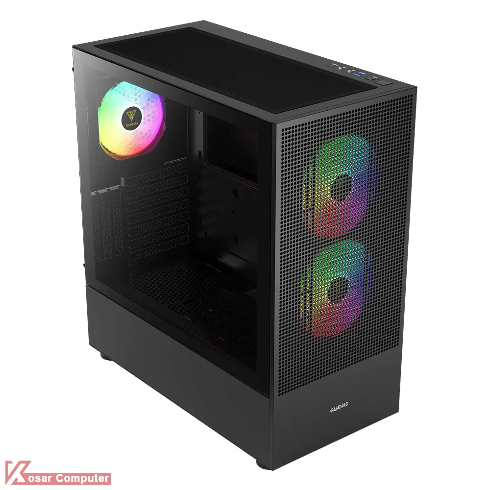 کیس گیم دیاس مدل GAMDIAS TALOS E3 MESH ELITE دارای 7 عدد جایگاه فن می باشد که شرکت 3 عدد فن از نوع ARGB روی آن نصب کرده است.در پنل جلویی USB3.0 و USB TYPE-C همراه کنترلر LED موجود می باشد.همچنین در قسمت جلویی و بالایی کیس 360 میلی متر کولینگ پشتیبانی می