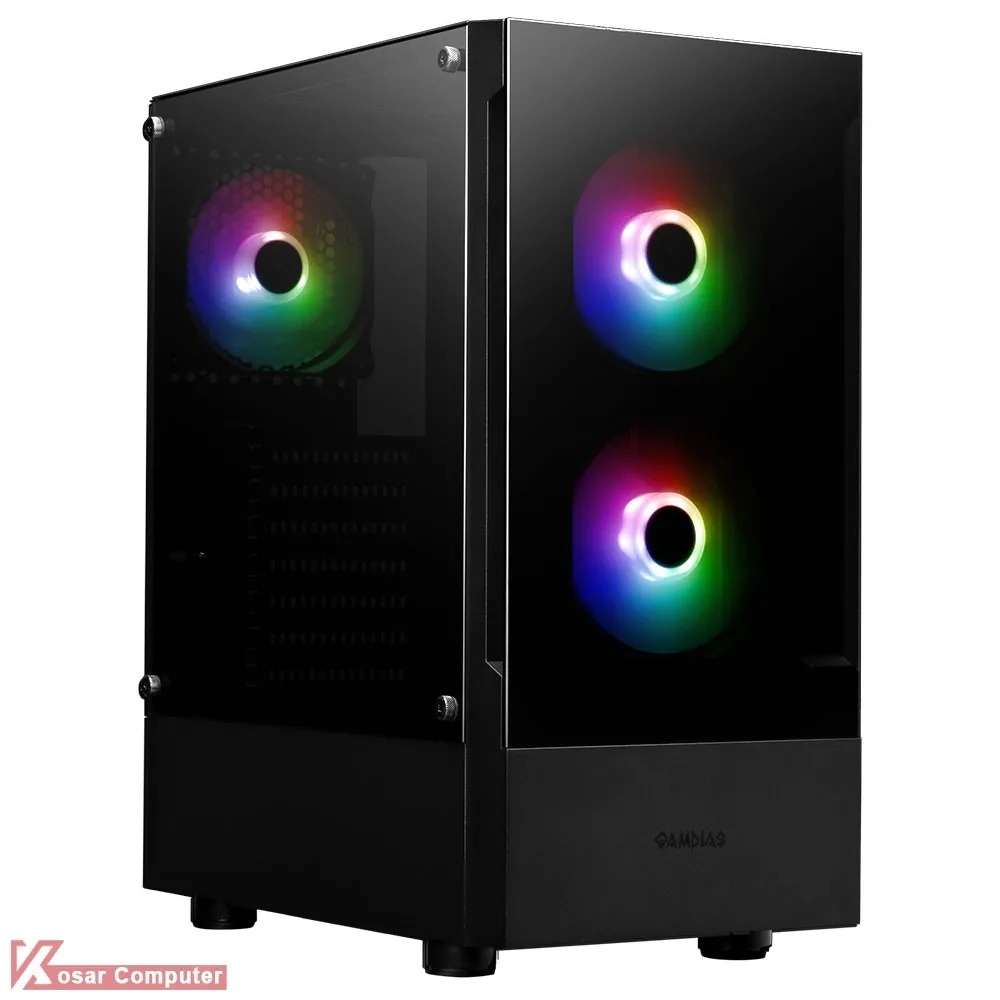 کیس گیم دیاس مدل GAMDIAS TALOS E3 دارای 7 عدد جایگاه فن می باشد که شرکت 3 عدد فن 120 میلی متری از نوع روی آن نصب کرده است.در پنل جلویی USB3.0 و USB 2.0 همراه کنترلر LED موجود می باشد.همچنین در قسمت جلویی کیس 360 میلی متر کولینگ پشتیبانی می شود
