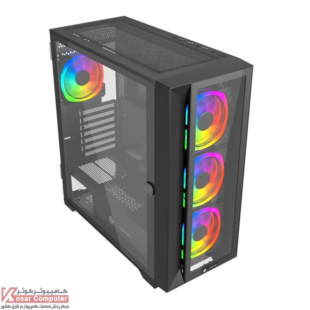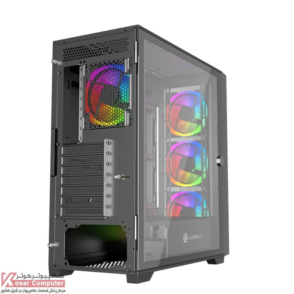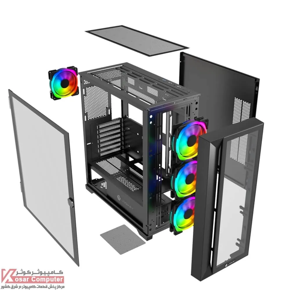 کیس گیمینگ لاجی کی C474B دارای درب شیشه ای و ظاهری زیباست.این کیس دارای 9 عدد جایگاه فن است که شرکت لاجی کی 4 عدد فن 120 روی کیس نصب کرده است. همچنین شما می توانید در قسمت بالایی و جلویی کولینگ 360 را نصب کنید.