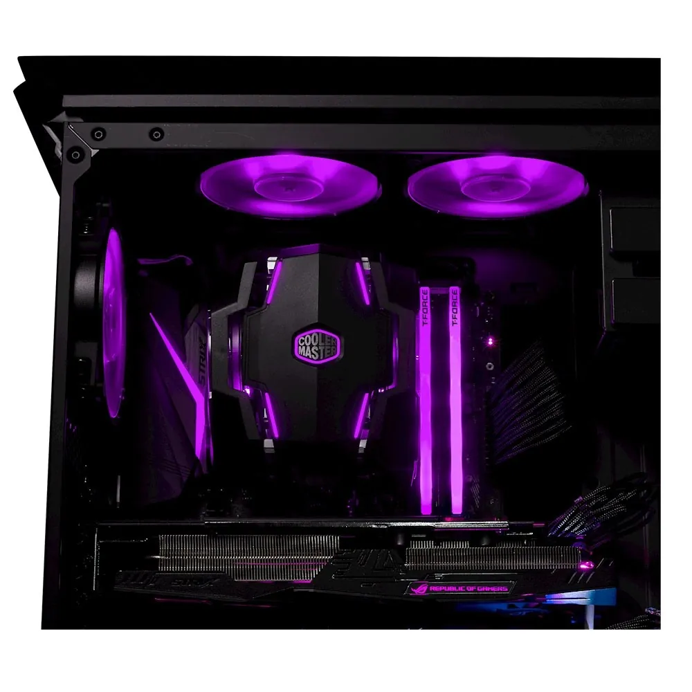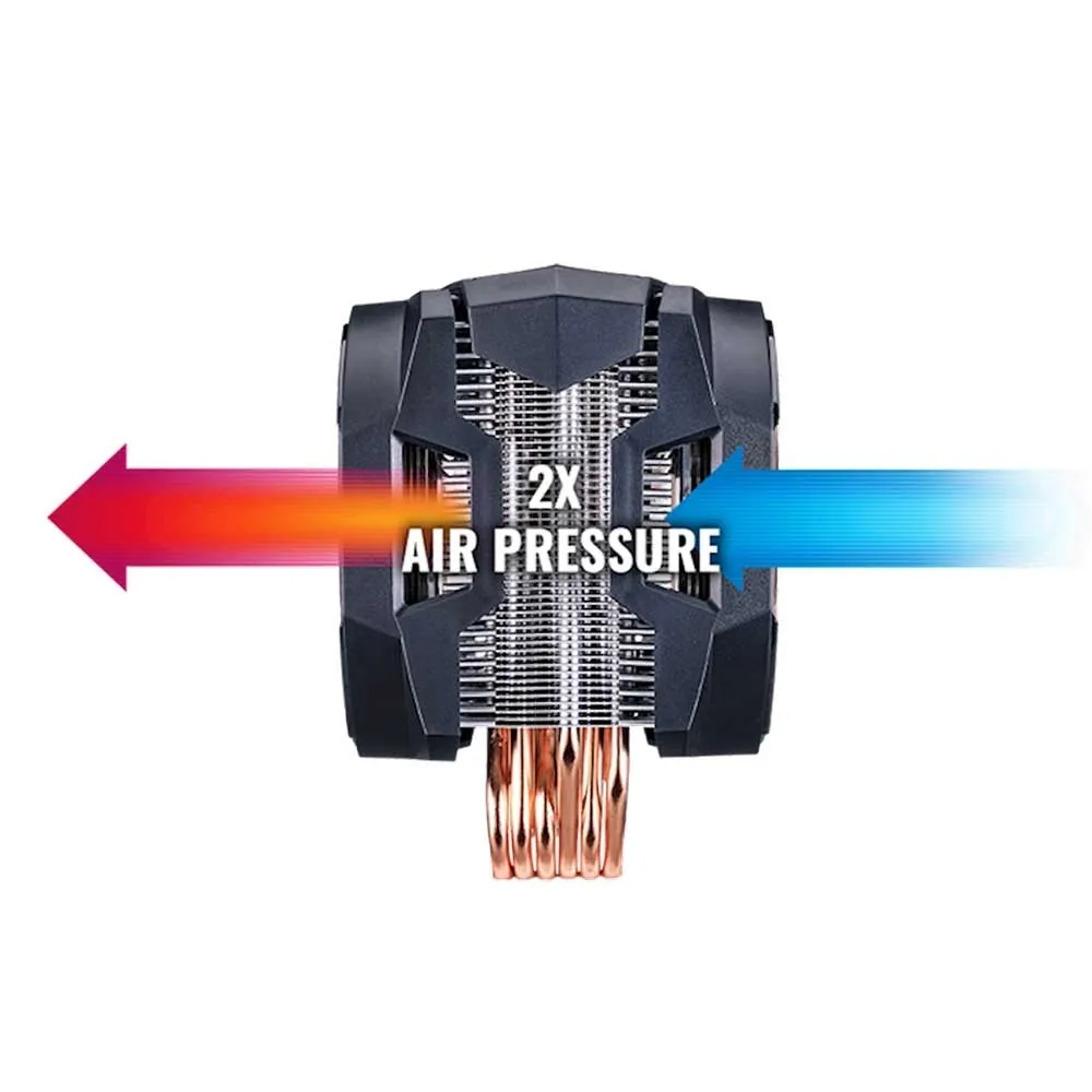 خنک کننده بادی کولر مستر مدل MASTERAIR MA610P دارای یک عدد هیت سینگ همراه با 2 عدد فن است و خیلی پر قدرت پردازنده را خنک می سازد.این خنک کننده دارای قابلیت RGB است.همچنین دارای 6 عدد هیت پایپ است که خیلی سریع گرما را به داخل هیت سینک انتقال می دهد
