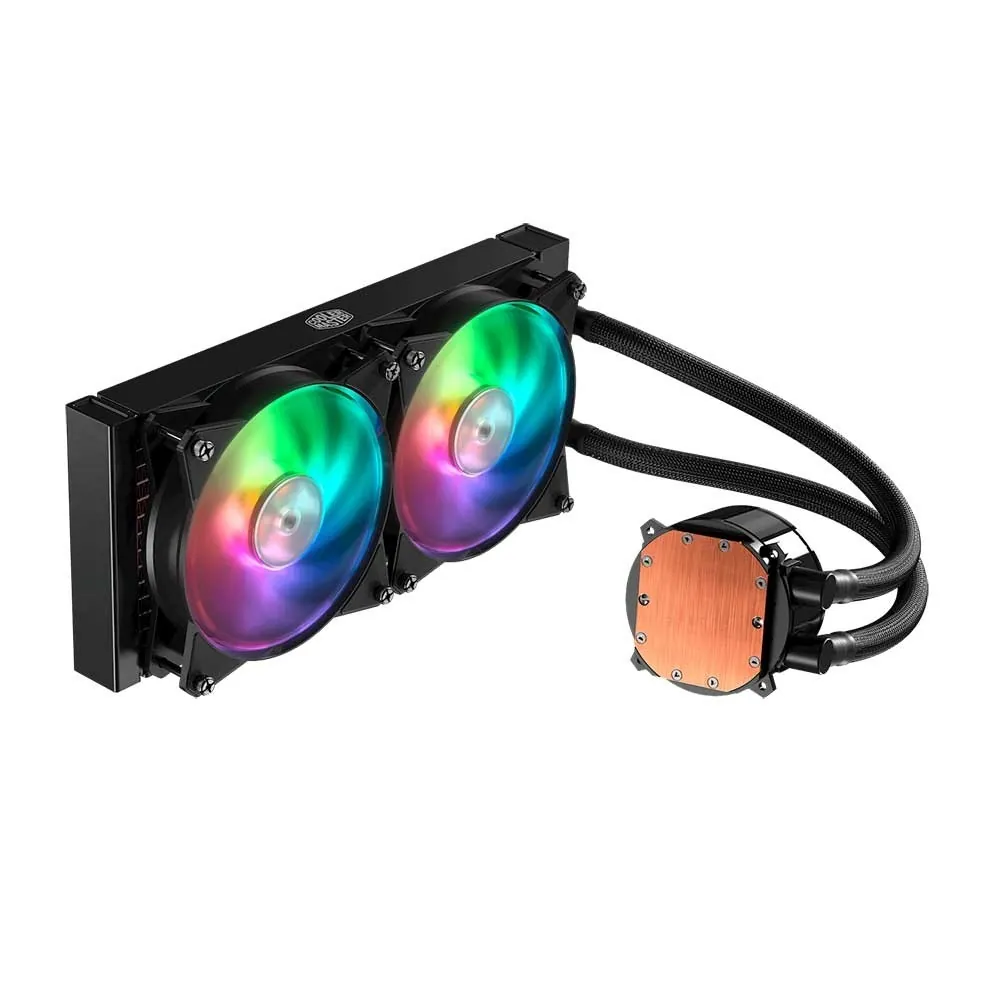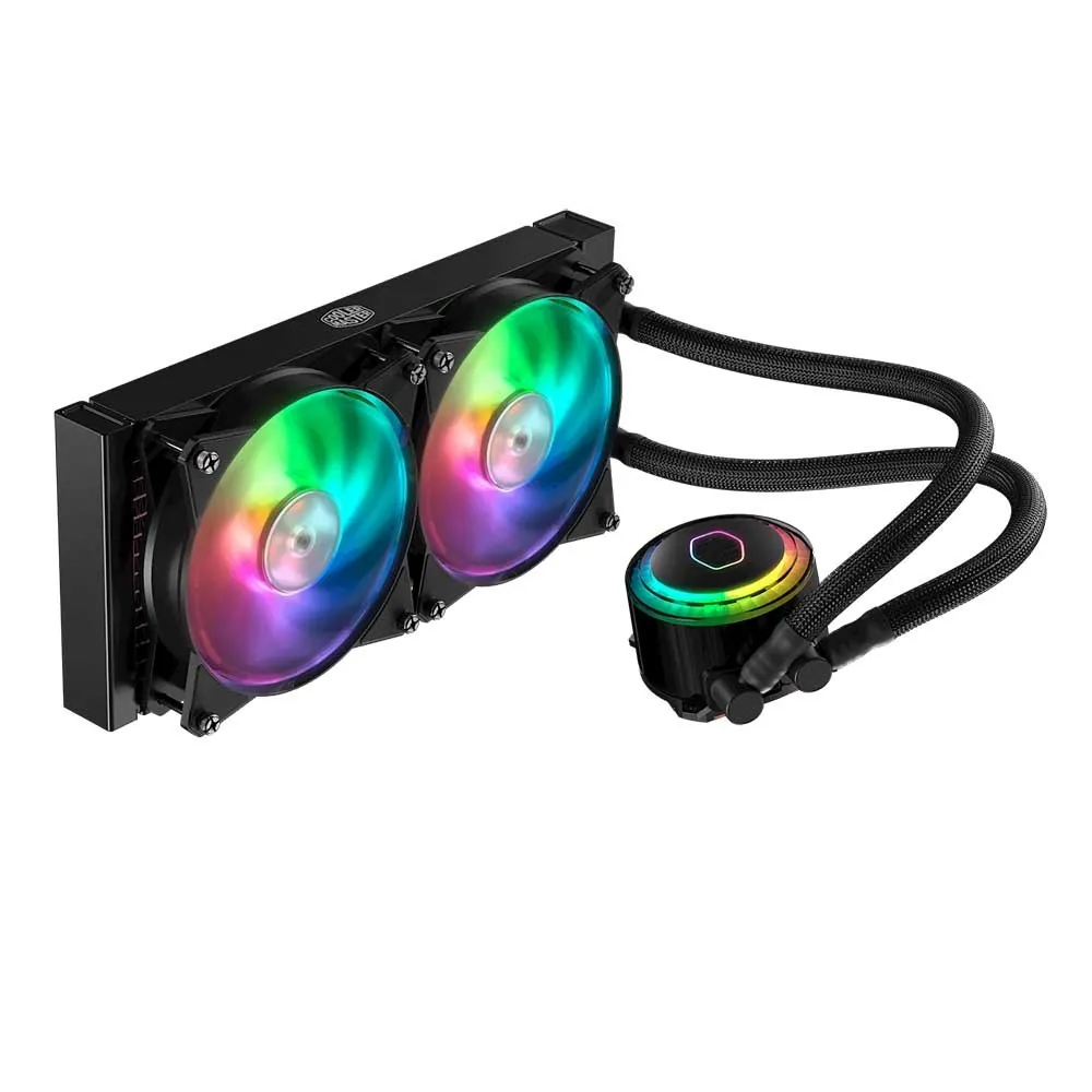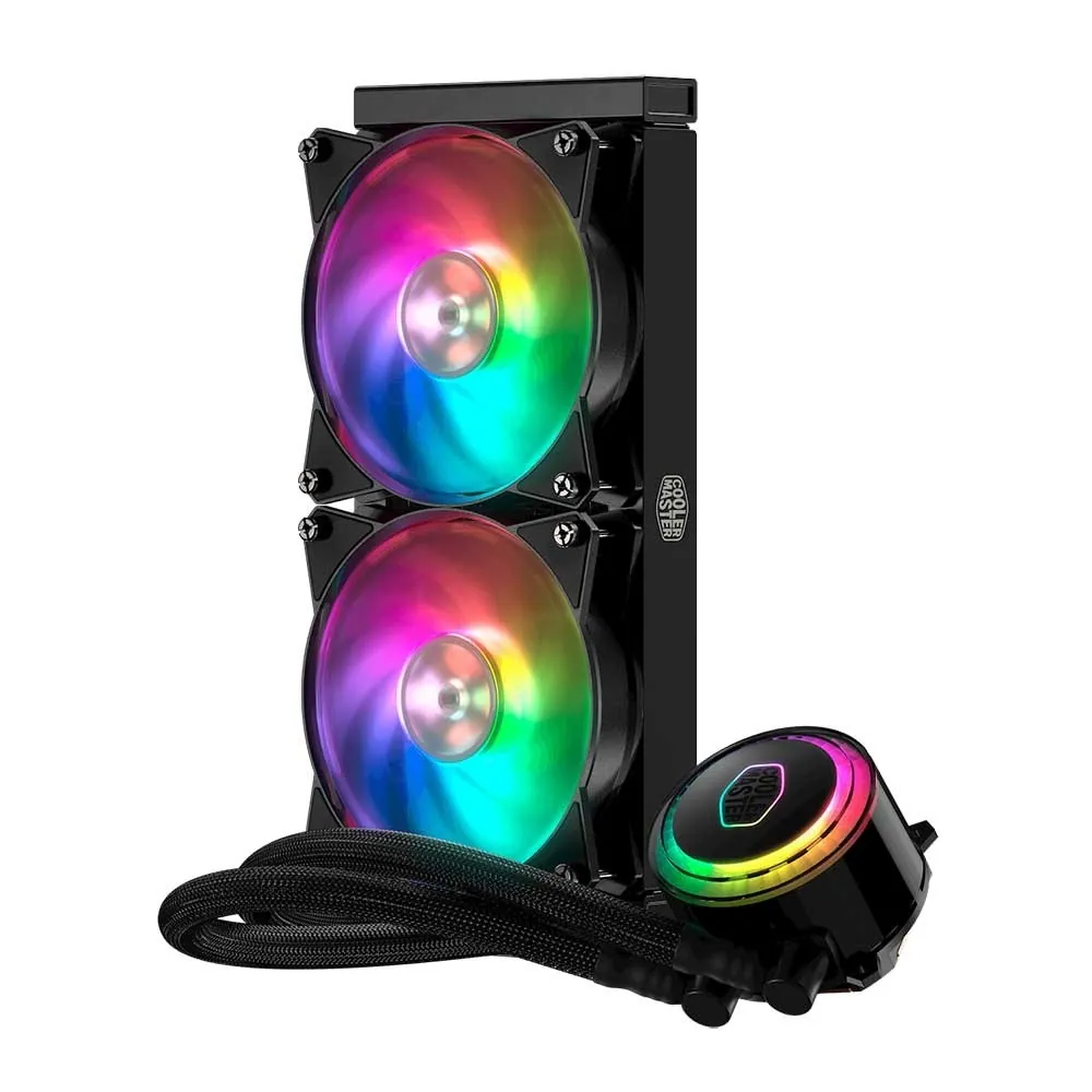 خنک کننده آبی کولر مستر مدل MasterLiquid ML240R RGB دارای یک رادایاتور از جنس آلومینیوم به طول 240 میلی متر همراه 2 عدد فن 120 میلی متری RGB است.حداکثر سرعت فن در این کولینگ 650 تا 2000 دور در دقیقه می باشد.همچنین با اکثر پردازنده های اینتل و ای ام دی…
