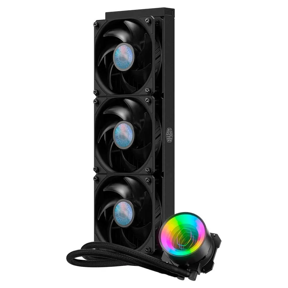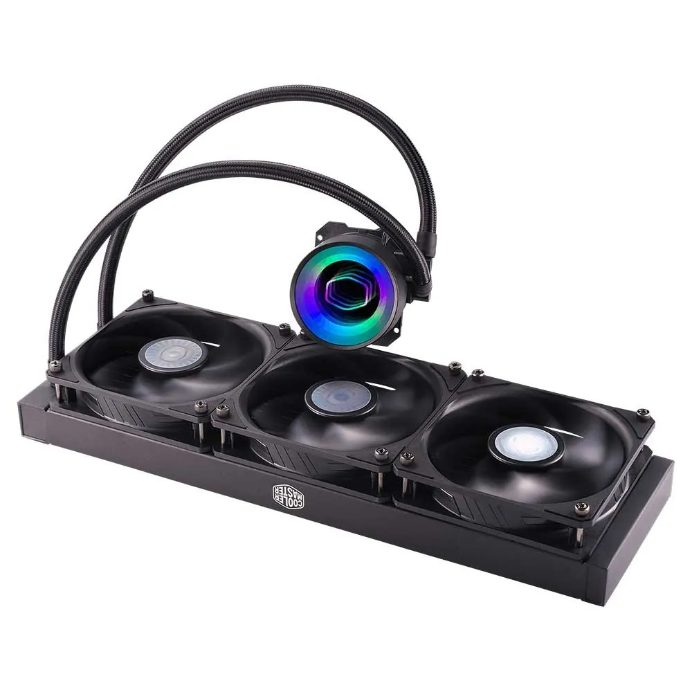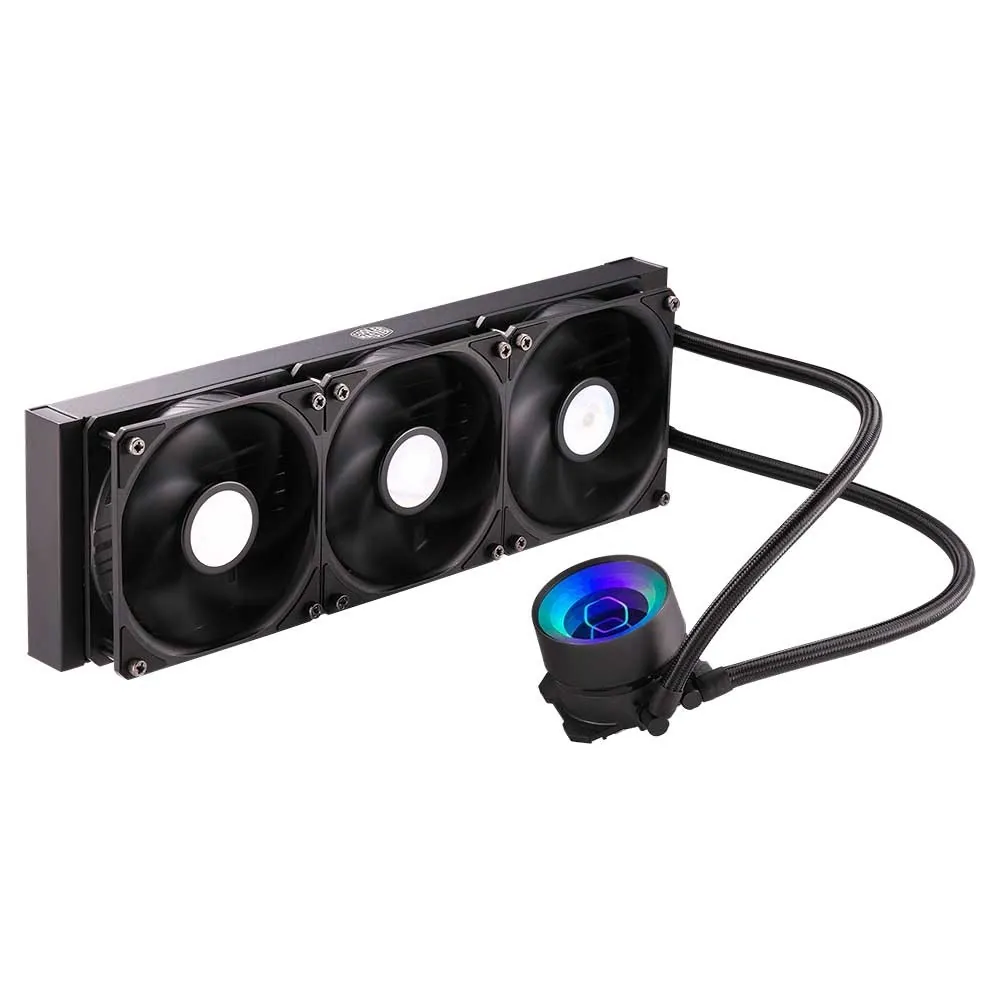 خنک کننده آبی کولر مستر مدل MasterLiquid ML360 Mirror RGB دارای یک رادایاتور از جنس آلومینیوم به طول 360 میلی متر همراه 3 عدد فن 120 میلی متری است.حداکثر سرعت فن در این کولینگ 650 تا 1800 دور در دقیقه می باشد.همچنین با اکثر پردازنده های اینتل و ای ام