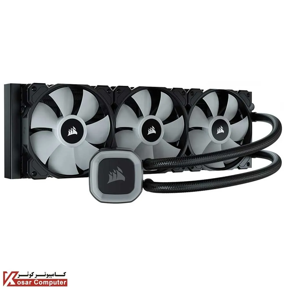 خنک کننده پردازنده مایع کورسیر H150 RGB دارای 3 عدد فن است و سرعت فن ها هم برابر 400 تا 1500 دور در دقیقه است.این خنک کننده مجهز به نور پردازی RGB می باشد.