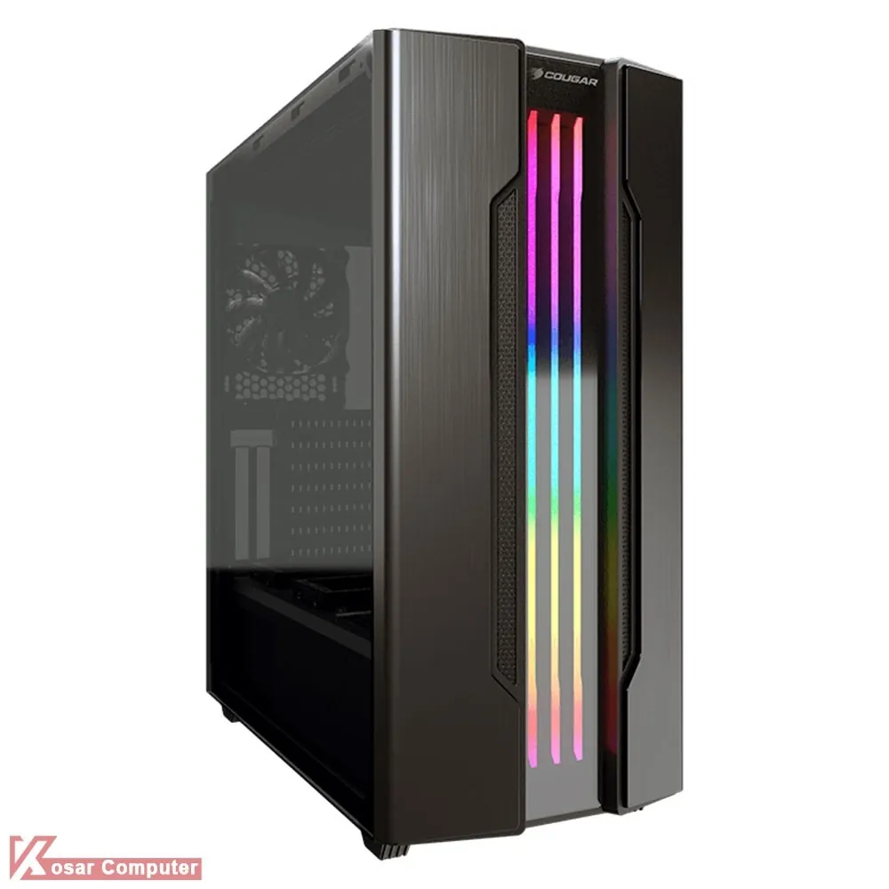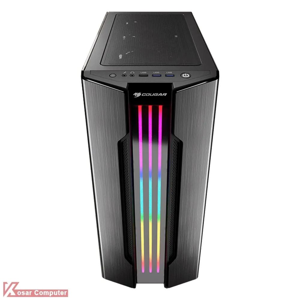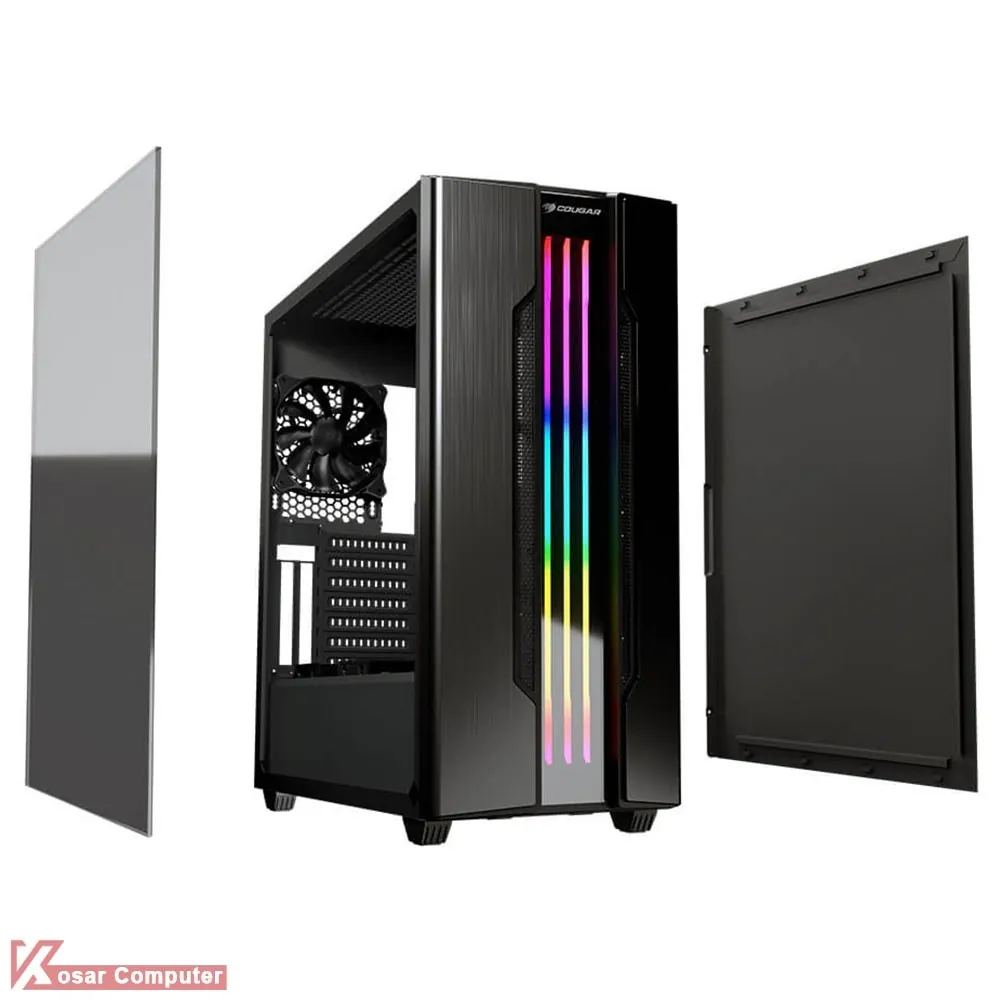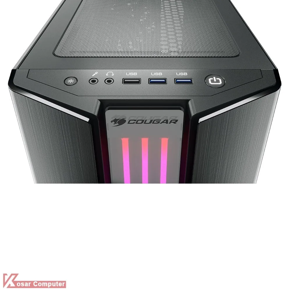 کیس گیمینگ کوگار GEMINI S دارای درب شیشه ای و ظاهری زیباست.این کیس دارای 8 عدد جایگاه فن است.همچنین دارای 5 عدد جایگاه 2.5 اینچ و 2 عدد جایگاه 3.5 اینچ می باشد.در پنل جلویی هم پورت های USB 3.0 و USB 2.0 به همراه دکمه ی کنترلر RGB موجود است