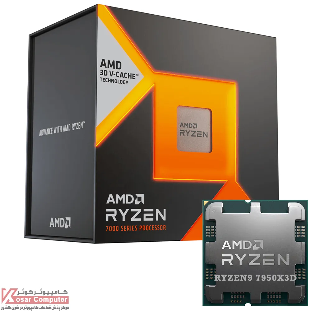 سی پی یو ای ام دی رایزن9 مدل Ryzen 9 7950X3D محصول شرکت ای ام دی است و از انواع مادربرد با سوکت AM5 پشتیبانی می کند و دارای 16+128 مگابایت حافظه کش با فرکانس 5.7 گیگاهرتز می باشد و از حافظه رم DDR5 باس 5200 مگاهرتز را پشتیبانی می کند