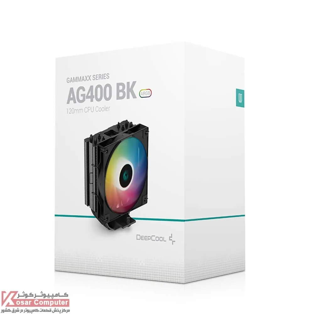 خنک کننده بادی پردازنده مشکی دیپ کول مدل AG400 BK ARGB دارای یک عدد فن 120 میلی متری حداکثر سرعت 2000 دور در دقیقه با 4 عدد هیت پایپ به ضخامت 6 میلی متری برای خنک سازی سی پی یو مناسب می باشد.این فن پردازنده های جدید اینتل LGA1700 را پشتیبانی می کند