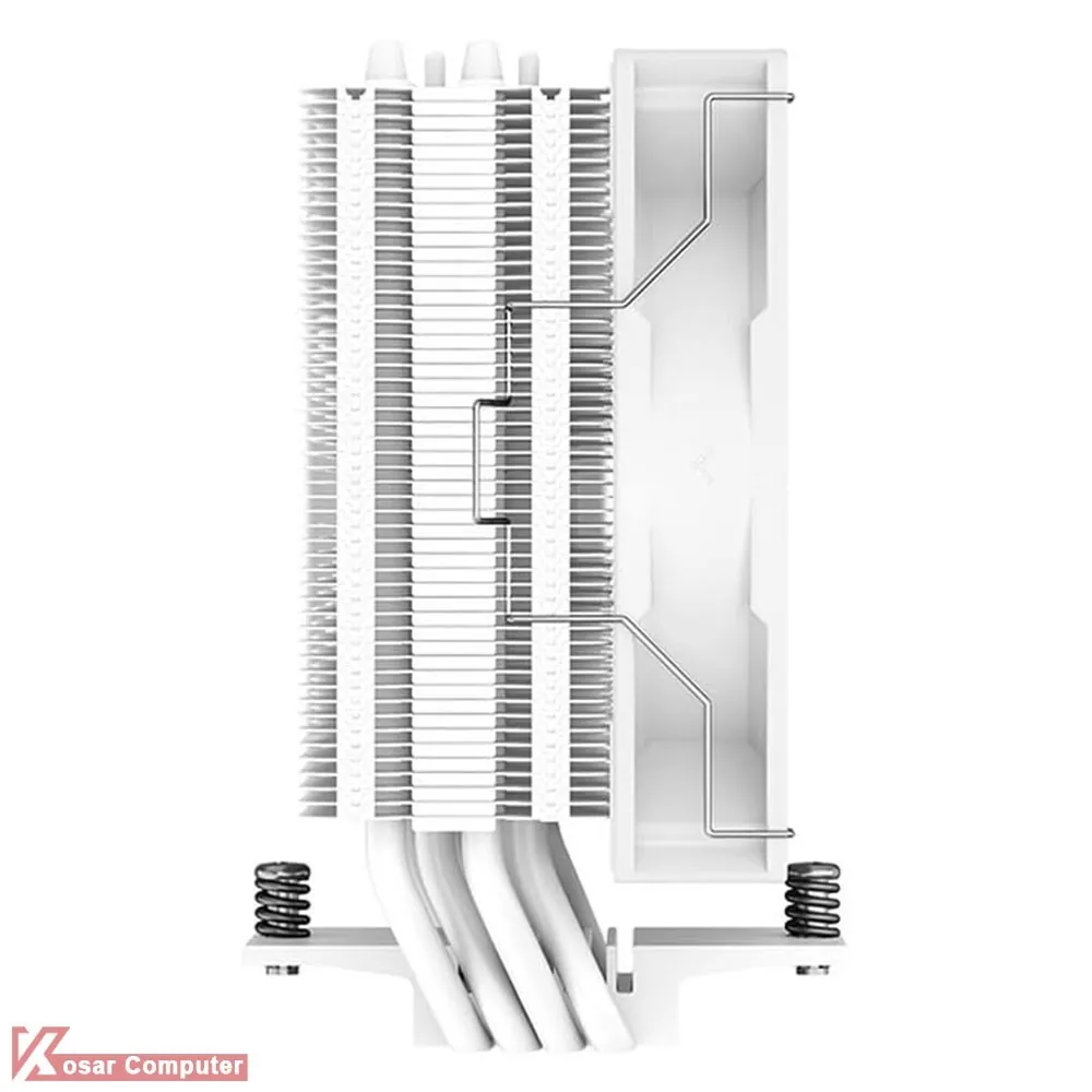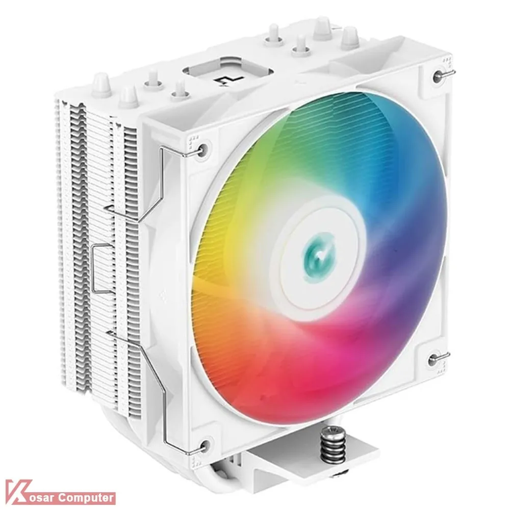 خنک کننده بادی پردازنده سفید دیپ کول مدل AG400 WH ARGB دارای یک عدد فن 120 میلی متری حداکثر سرعت 2000 دور در دقیقه با 4 عدد هیت پایپ به ضخامت 6 میلی متری برای خنک سازی سی پی یو مناسب می باشد.این فن پردازنده های جدید اینتل LGA1700 را پشتیبانی می کند