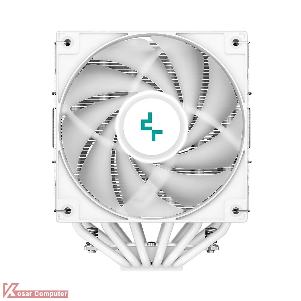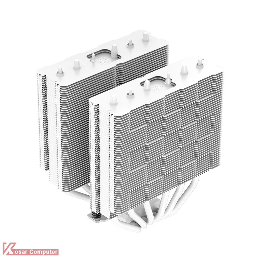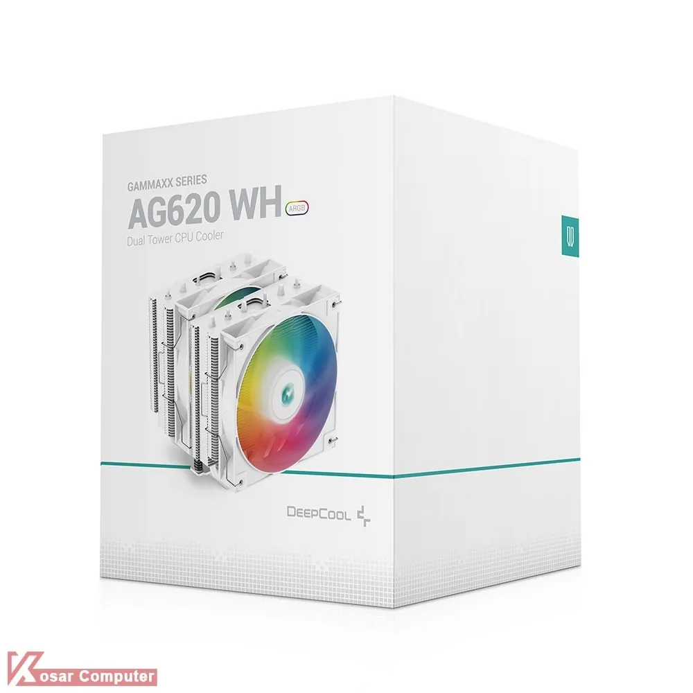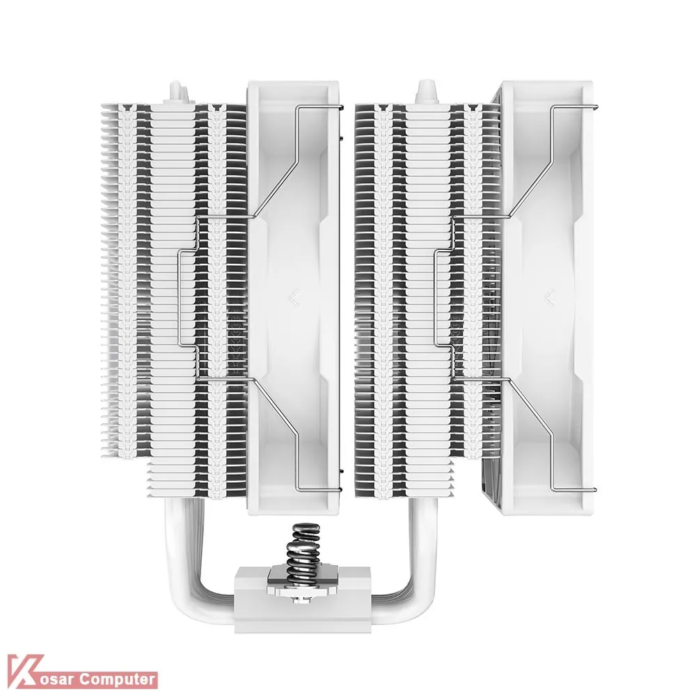 خنک کننده بادی پردازنده دیپ کول سفید رنگ مدل AG620 WH ARGB دارای دو عدد فن 120 میلی متری حداکثر سرعت 1850 دور در دقیقه با 6 عدد هیت پایپ به ضخامت 6 میلی متری برای خنک سازی سی پی یو مناسب می باشد.این فن پردازنده های جدید اینتل LGA1700 را پشتیبانی می کند