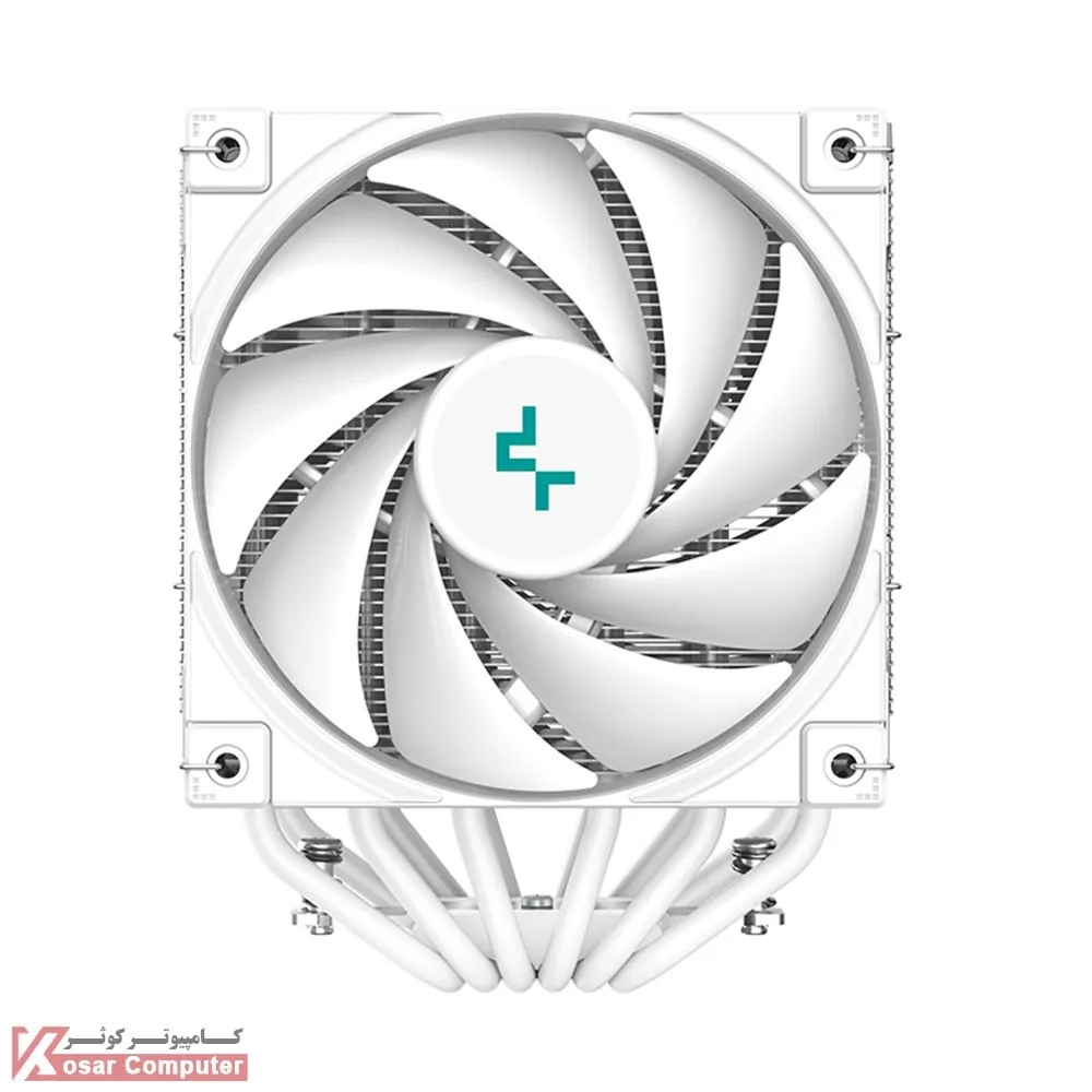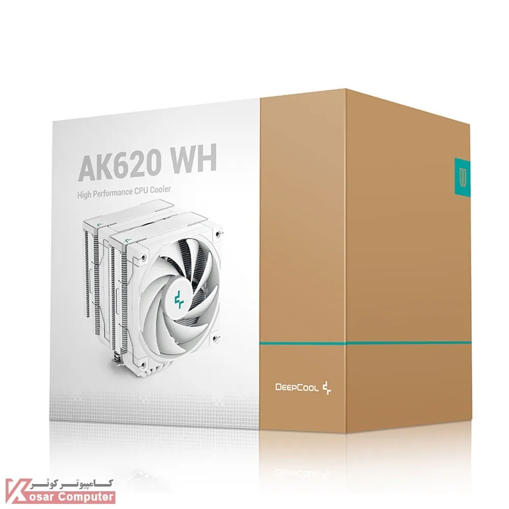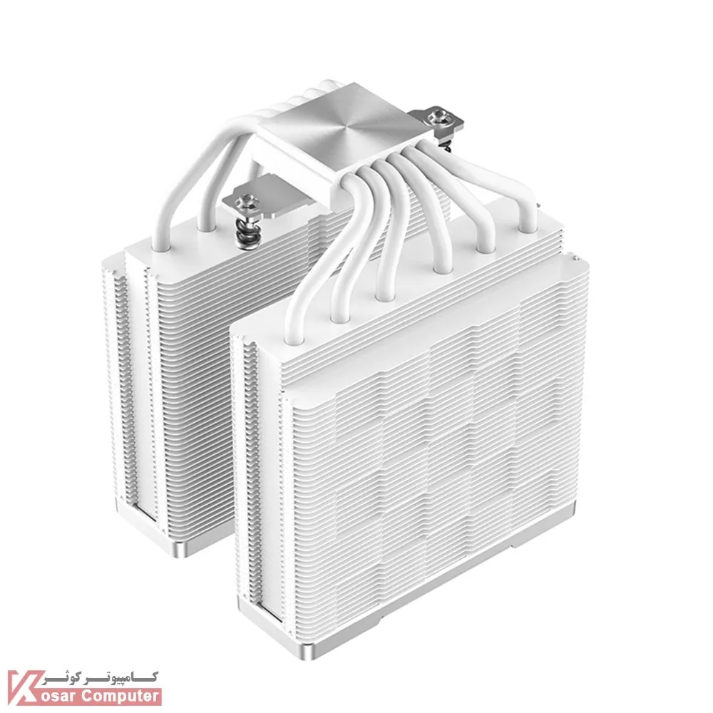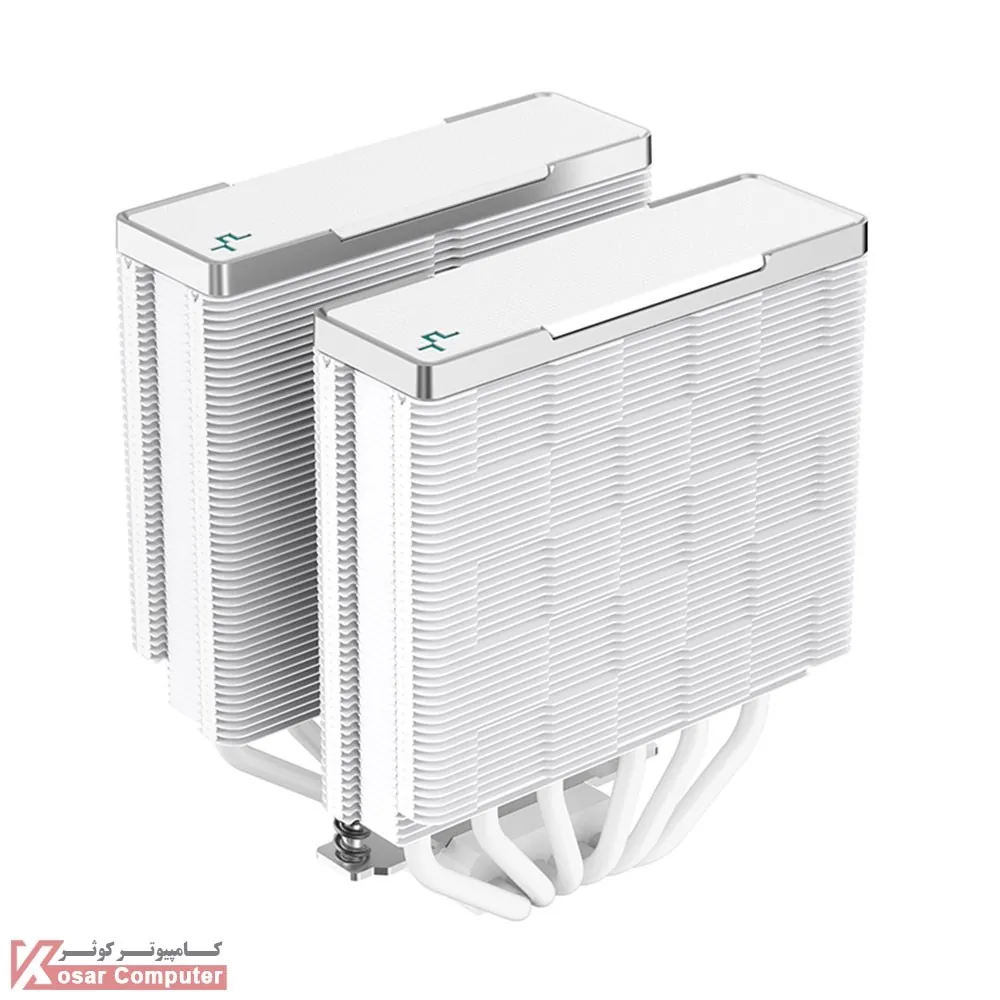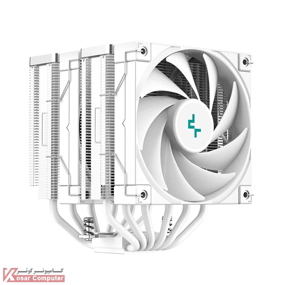 خنک کننده بادی پردازنده دیپ کول مدل AK620 WH دارای دو عدد فن 120 میلی متری حداکثر سرعت 1850 دور در دقیقه با 6 عدد هیت پایپ به ضخامت 6 میلی متری برای خنک سازی سی پی یو مناسب می باشد.این فن پردازنده های جدید اینتل LGA1700 را پشتیبانی می کند.