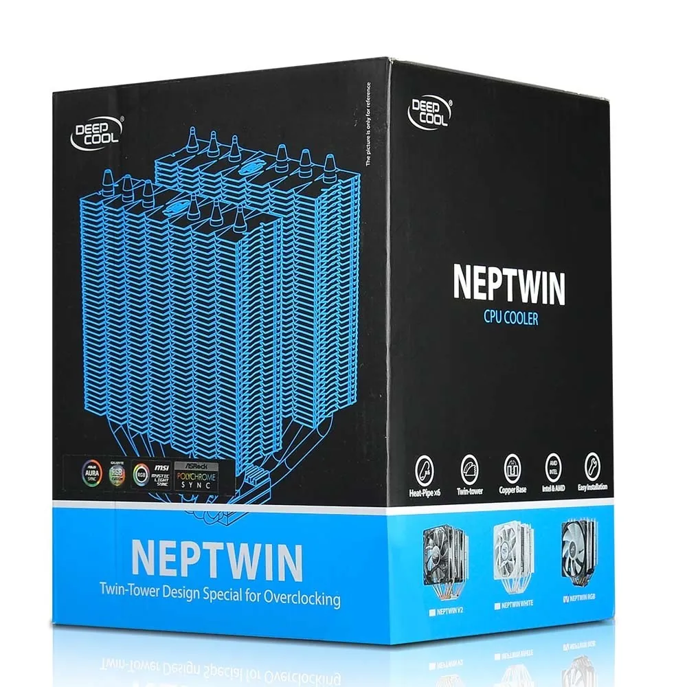 خنک کننده پردازنده دیپ کول مدل NEPTWIN V2 دارای یک عدد هیت سینک 158 میلی متری و دو عدد فن 120 میلی متری همراه با 6 عدد هیت پایپ برای خنک سازی سی پی یو فوق العاده می باشد.