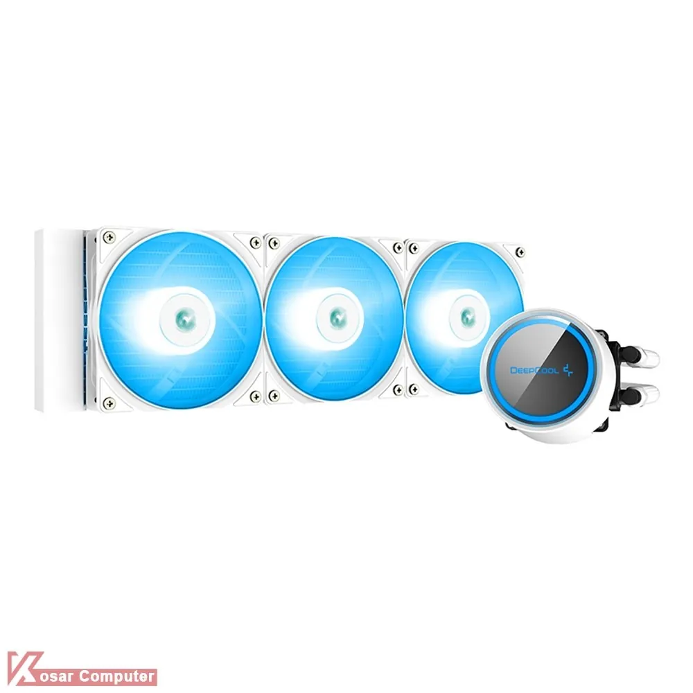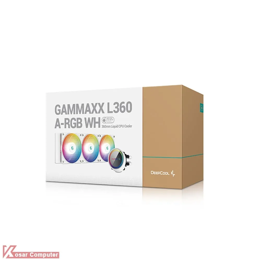 خنک کننده سفید GAMMAXX L360 A-RGB WH محصولی قدرتمند و زیبا از شرکت دیپ کول است که دارای 3 عدد فن 120 میلی متری و قابلیت نورپردازی A-RGB است.رادیاتور به کار گرفته شده در این کولینگ در سایز 360 میلی متری است.همچنین کولینگ با اکثر پردازنده های اینتل و ای ام