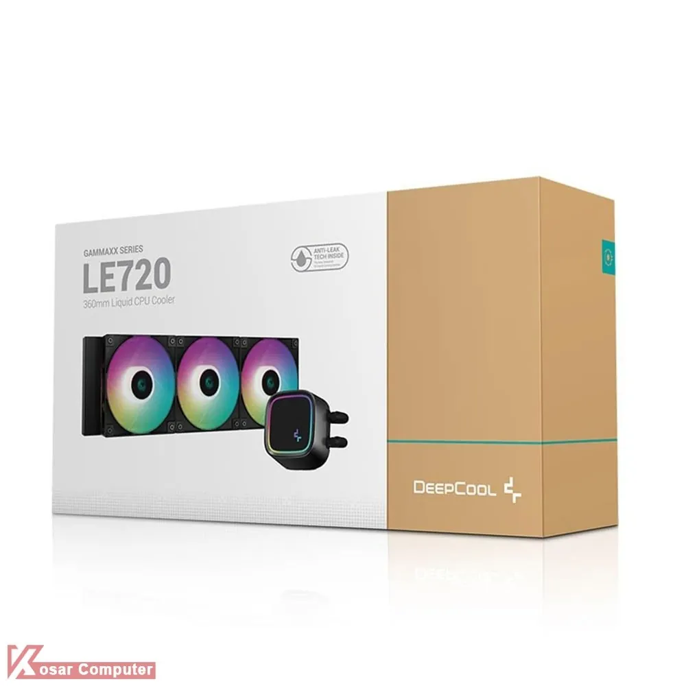 خنک کننده مایع دیپ کول مدل LE720 ARGB مجهز به یک رادیاتور 360 میلی متری و 3 عدد فن 120 ملی متری ARGB است و دارای سرعت بالای 500 تا 2250 دور بر دقیقه می باشد.این کولینگ با اکثر پردازنده های اینتل LGA1700 و ای ام دی AM4 و AM5 سازگاری دارد.