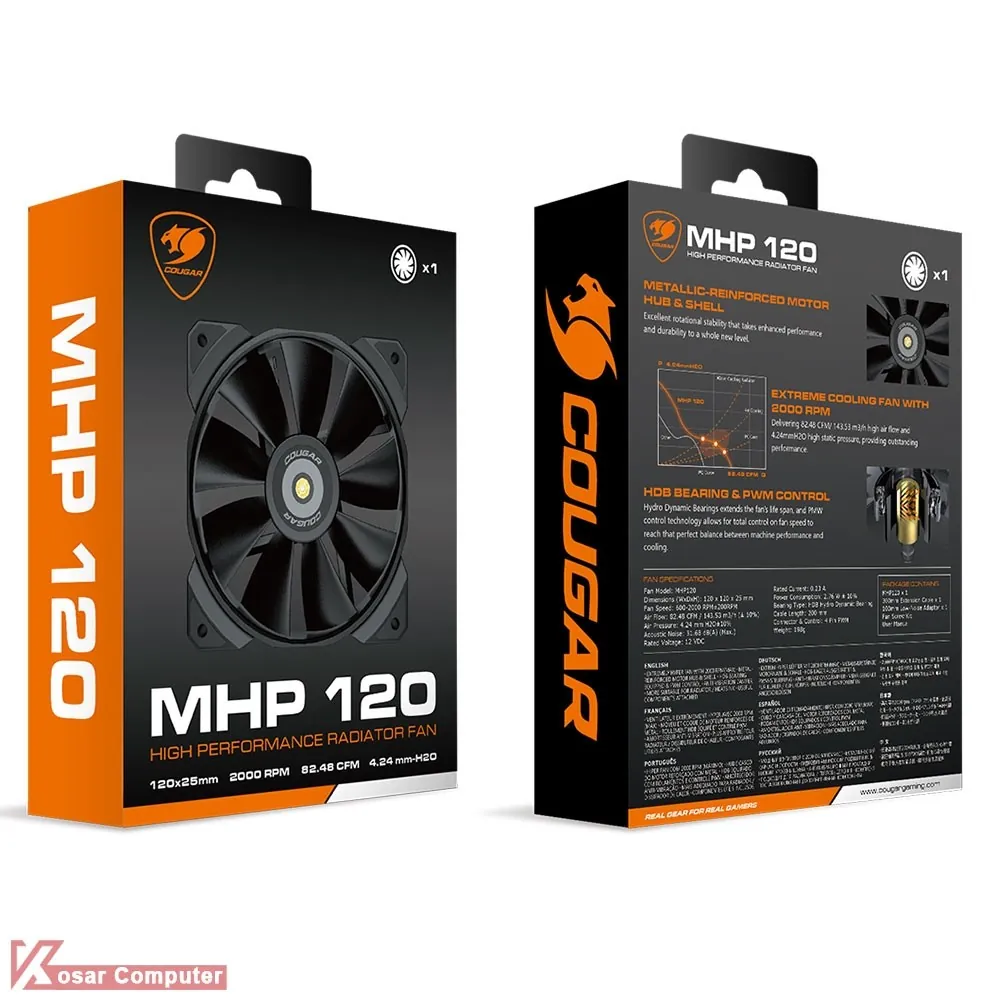 فن کیس 120 میلی متری کوگار مدل MHP 120 قدرتمند در اتلاف گرما در فضای داخلی کیس می باشد و برای سیستم های گیمینگ و پردازشی فوق العاده است.این فن کیس دارای 9 عدد پره و سرعت 600 تا 2000 دور بر دقیقه می باشد که توسط یک کانکتور 4 پین به پاور متصل می شود.