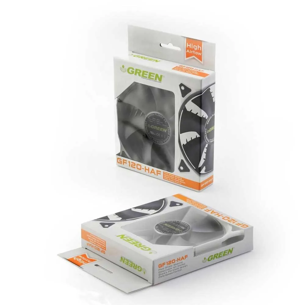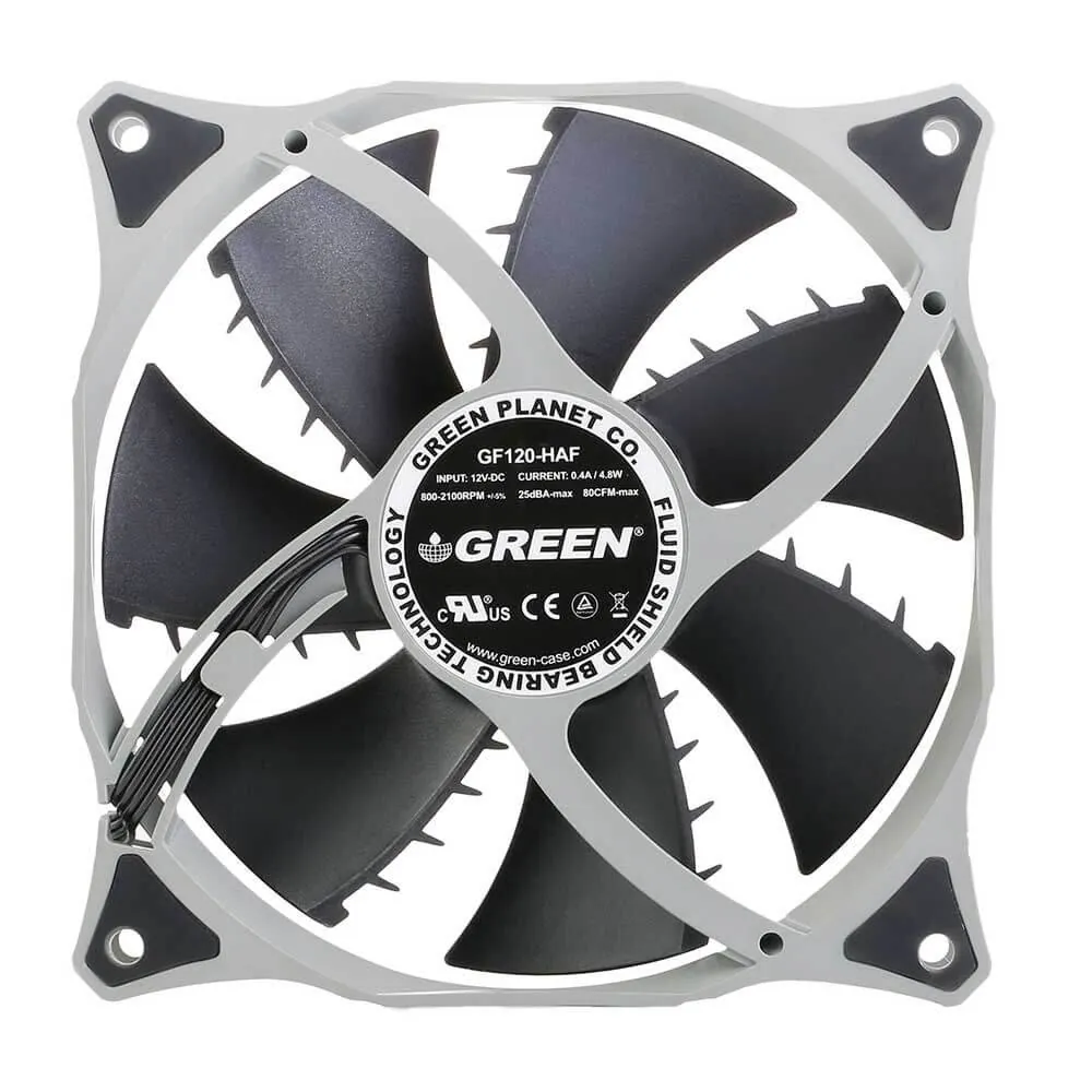 فن کیس قدرتمند گرین مدل GF120-HAF دارای 7 عدد پره با تکنولوژی هسته فن Fluid Shield Bearing می باشد.این فن دارای حداکثر سرعت 2100 دور در دقیقه است و سرعت چرخش بالایی دارد و هیچ گونه لرزشی ایجاد نمی کند.
