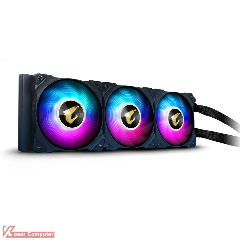 خنک کننده مایع گیگابایت مدل AORUS WATERFORCE 360 مجهز به یک رادیاتور 360 میلی متری و 3 عدد فن 120 ملی متری RGB است و با حداکثر سرعت 2150RPM سیستم شما را خنک می سازد.همچنین پردازنده های اینتل و ای ام دی با سوکت های جدید را هم پشتیبانی می کند.