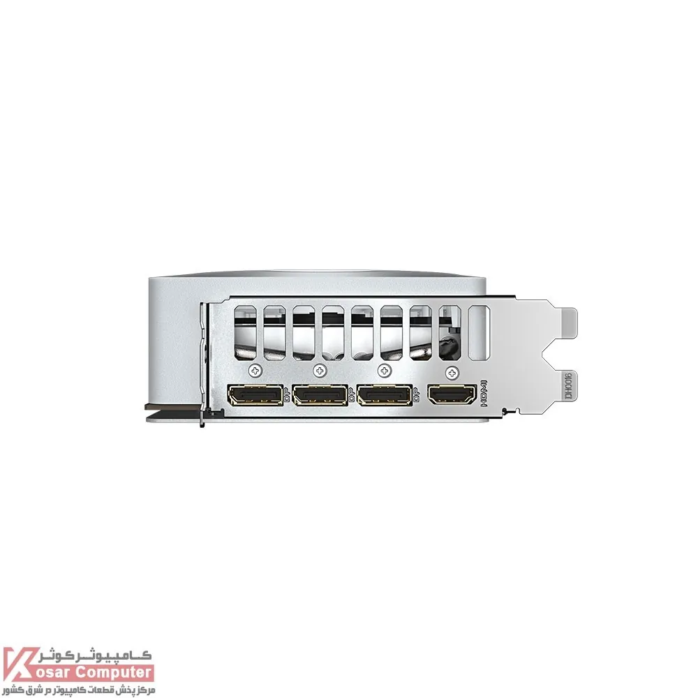 کارت گرافیک 3 فن گیگابایت مدل GIGABYTE RTX 5080 AERO OC SFF 16G دارای 16 گیگابایت حافظه از نوع GDDR7 و رابط 256 یبت همراه با 10752 هسته پردازشی و فرکانس 2730 مگاهرتز می باشد.در پنل پشتی هم 1 پورت HDMI 2.1b همراه با 3 عدد پورت DisplayPort 2.1b