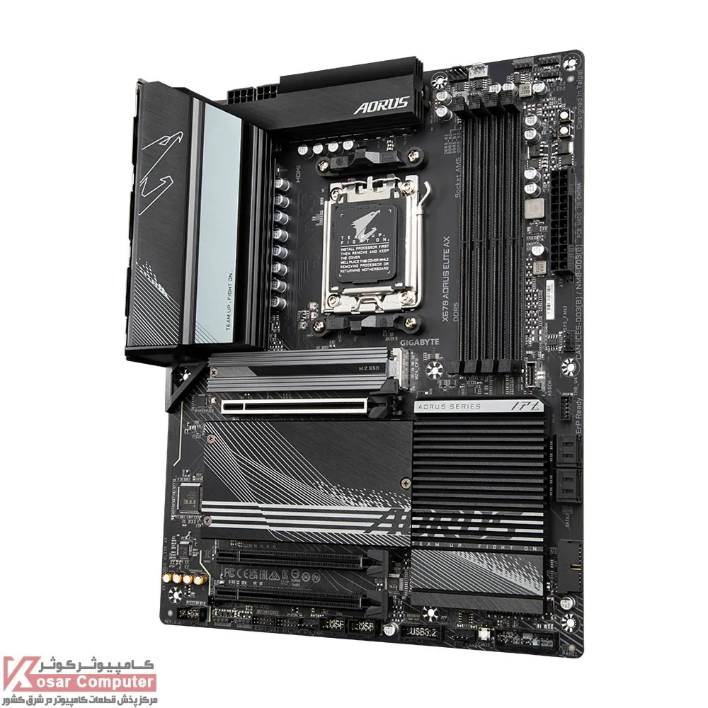 مادربرد ای ام دی DDR5 گیگابایت X670 AORUS ELITE AX از پردازنده های AMD AM5 سری 9000 ، 8000 ، 7000 پشتیبانی می کند.این مادربرد دارای 4 عدد اسلات رم DDR5 است و تا باس 8000 مگاهرتز حافظه رم را می توان روی آن قرار داد.همچنین دارای 4 عدد کانکتور M.2 NME است