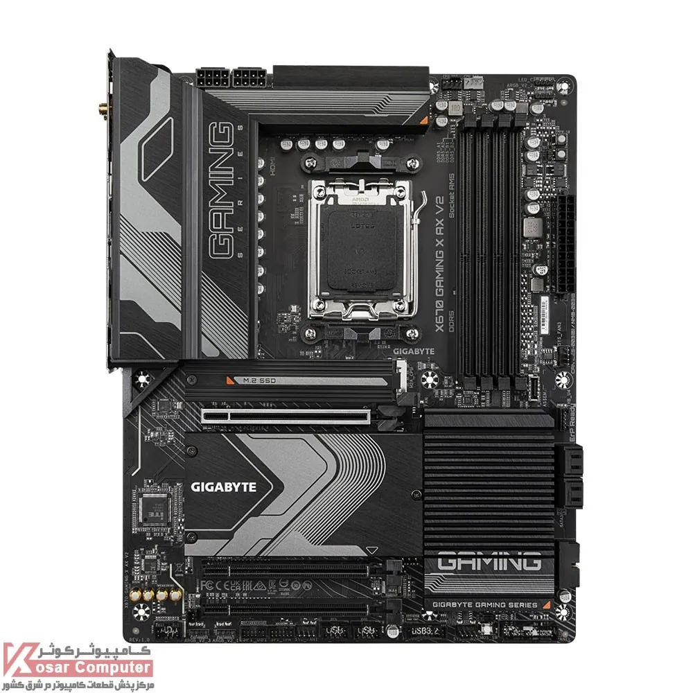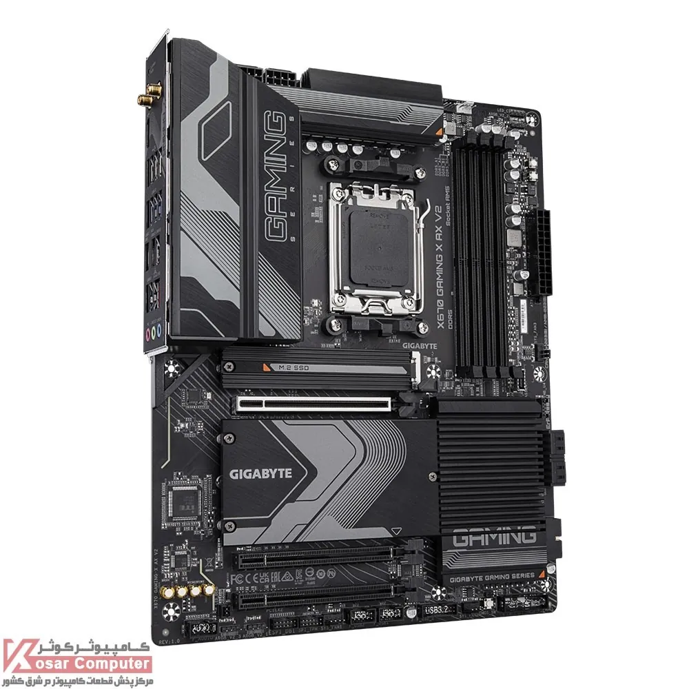 مادربرد ای ام دی DDR5 گیگابایت X670 GAMING X AX V2 از پردازنده های AMD AM5 سری 9000 ، 8000 ، 7000 پشتیبانی می کند.این مادربرد دارای 4 عدد اسلات رم DDR5 است و تا باس 8000 مگاهرتز حافظه رم را می توان روی آن قرار داد.همچنین دارای 4 عدد کانکتور M.2 NME است