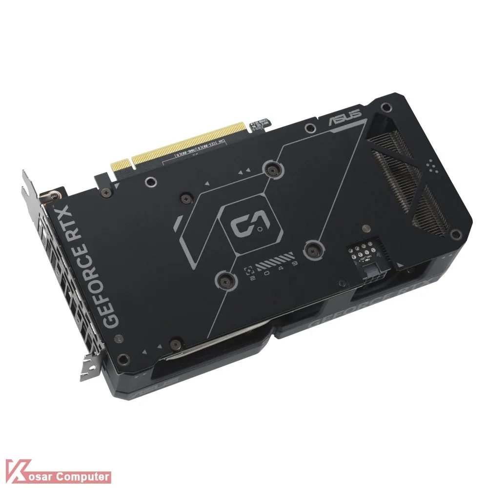 کارت گرافیک مناسب پردازشی و گیمینگ مدل ASUS Dual RTX 4060 Ti OC 8GB دارای 8 گیگابایت حافظه از نوع GDDR6 و رابط 128 یبت همراه با 4352 هسته پردازشی می باشد.در پنل پشتی هم 1 پورت HDMI 2.1a همراه با 3 عدد پورت DisplayPort 1.4a