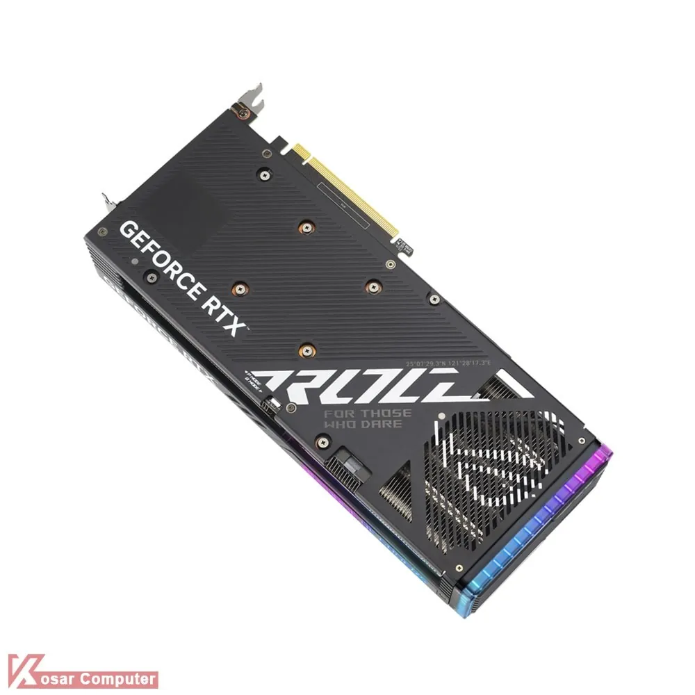 کارت گرافیک مناسب پردازشی و گیمینگ مدل ASUS ROG Strix RTX 4060 Ti 8GB دارای 3 عدد فن با 8 گیگابایت حافظه از نوع GDDR6 و رابط 128 یبت همراه با 4352 هسته پردازشی می باشد.در پنل پشتی هم 1 پورت HDMI 2.1a همراه با 3 عدد پورت DisplayPort 1.4a