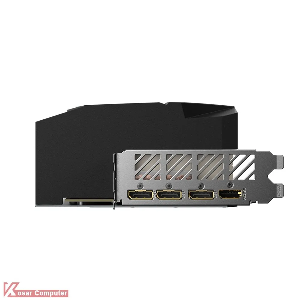 کارت گرافیک گیمینگ گیگابایت مدل GIGABYTE AORUS RTX 4080 SUPER MASTER 16G دارای 16 گیگابایت حافظه از نوع GDDR6X و رابط 256 یبت همراه با 10240 هسته پردازشی می باشد.در پنل پشتی هم 1 پورت HDMI 2.1a همراه با 3 عدد پورت DisplayPort 1.4a موجود است