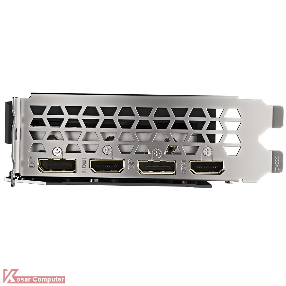 کارت گرافیک گیگابایت RTX 3060 Ti EAGLE OC D6X 8G دارای 3 عدد فن ، 8 گیگابایت حافظه از نوع GDDR6X و رابط 256 بیت می باشد و با توجه به این خصوصیات برای اجرای بازی و امور پردازشی مناسب می باشد.همچنین دارای 2 عدد پورت HDMI و 2 عدد پورت DISPLAY PORT است