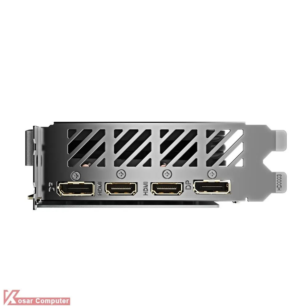 کارت گرافیک گیگابایت مدل GIGABYTE RTX 4060 GAMING OC 8G دارای 8 گیگابایت حافظه از نوع GDDR6 و رابط 128 یبت همراه با 3072 هسته پردازشی می باشد.در پنل پشتی هم 2 پورت HDMI 2.1a همراه با 3 عدد پورت DisplayPort 1.4a